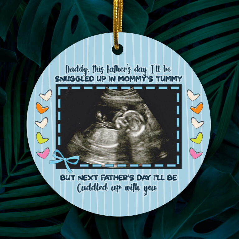 Let’s Shop Personalized Photo Daddy This Father’s Day I’ll Be Snuggled Up In Mommy’s Tummy Circle Ornament – Father’s Day Gift!