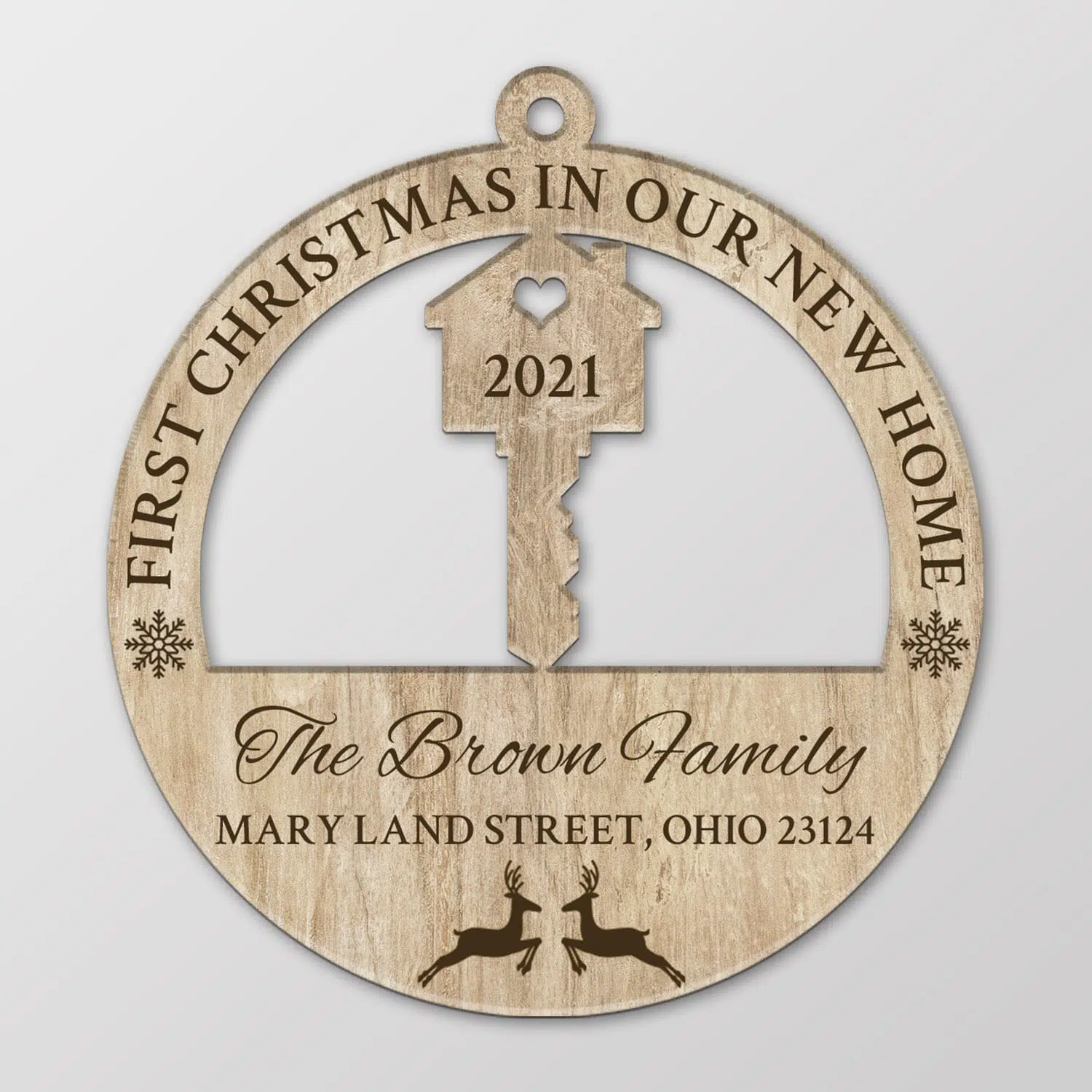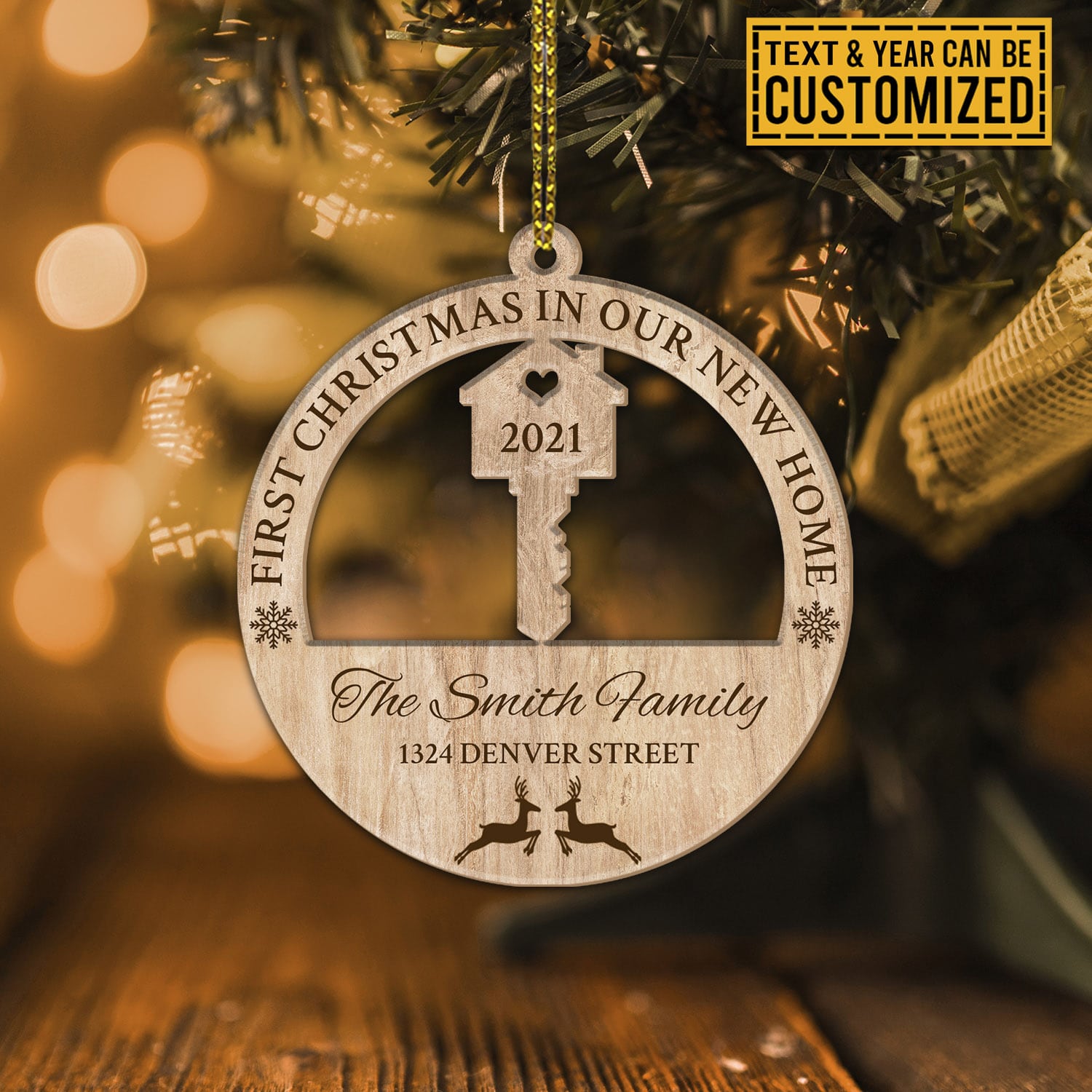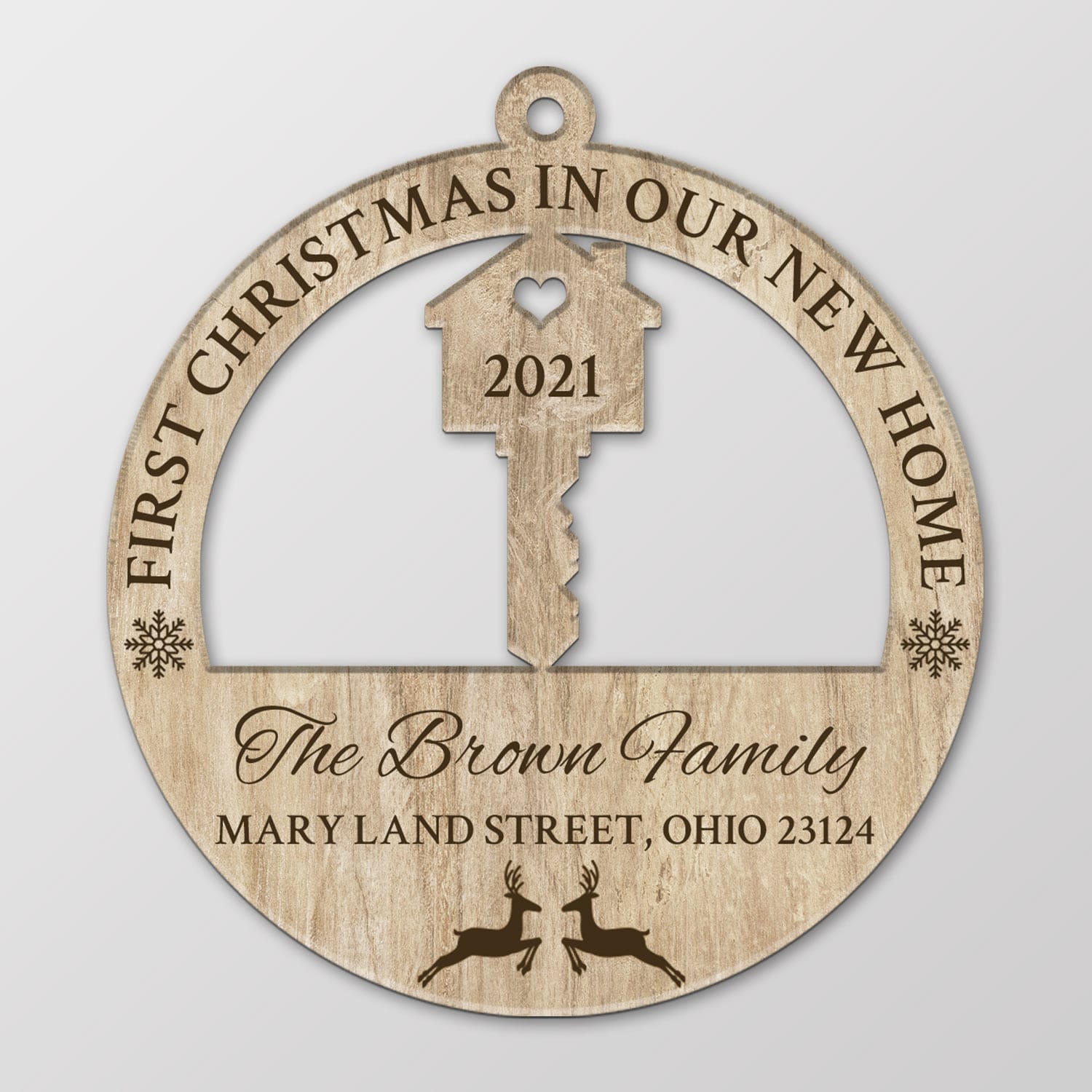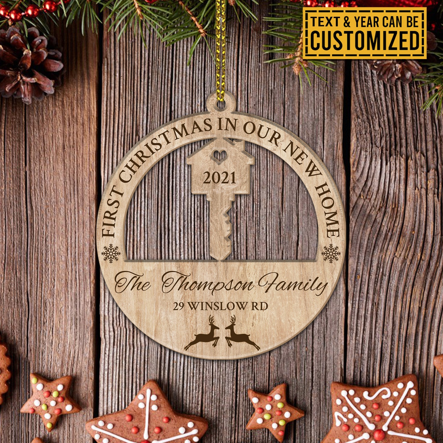 Let’s Shop Personalized First Christmas In Our New Home Custom Shaped Wooden Key Christmas Ornament!