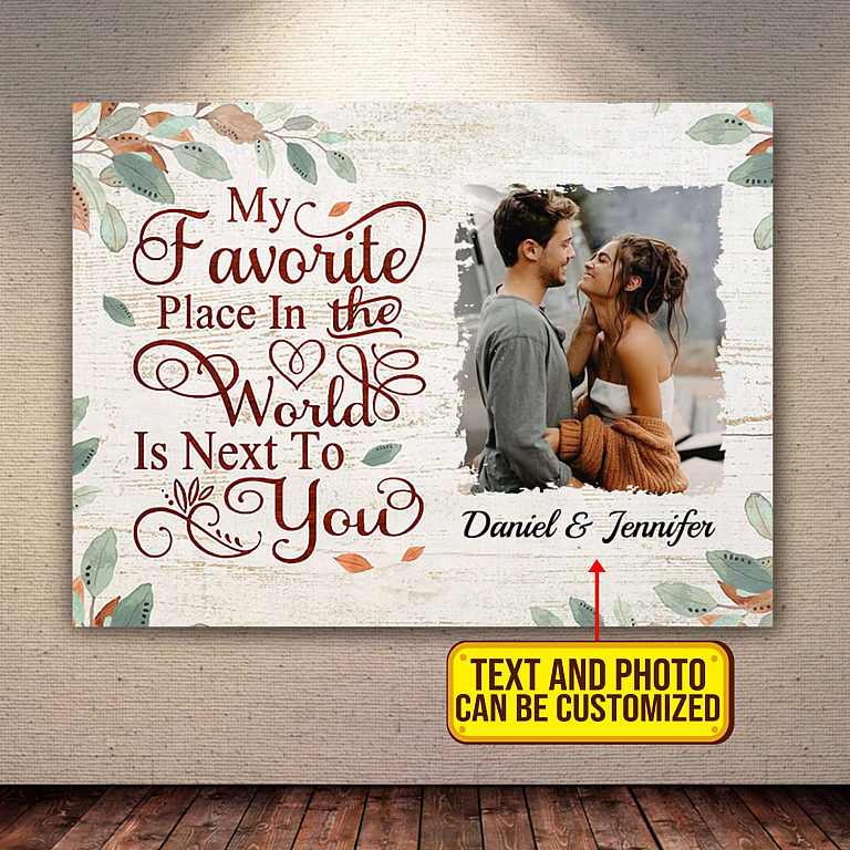 Let’s Shop Personalized Photo My Favorite Place In The World Is Next To You Framed Canvas – Unframed Poster – Custom Photo Canvas!