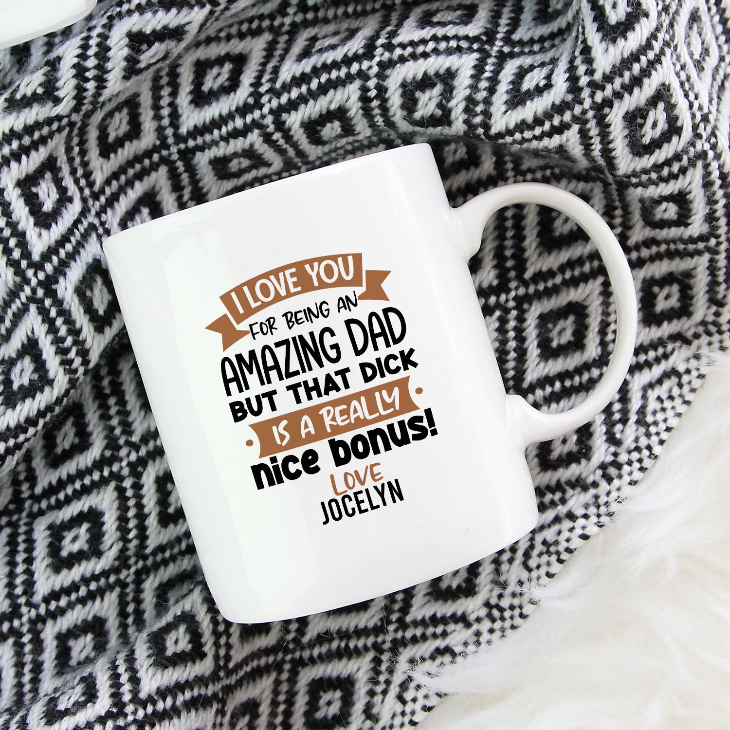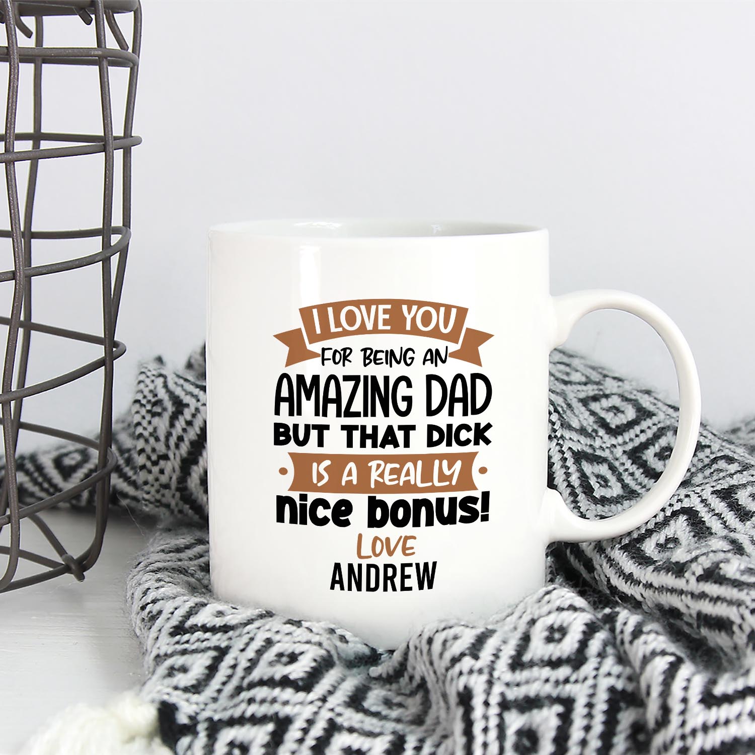 At CubeBik, besides mugs, we also offer tees, hoodies, sweaters, raglans, tanks, wall arts, canvases, posters, blankets, engraved jewelry, personalized necklaces, printed face masks, throw pillows, tote bags, hats, accessories and more on our website, so do not miss our other Being Your Favorite Child Mug, Dad Mug Funny from Son, but That Dick Is Really Nice Bonus Mug, I Love You for Being an Amazing Dad but That Dick Is Really Nice Bonus Mug, Nice Bonus Dad Mug related merchandise. Moreover, all the products are made-to-order and one of a kind custom designs you can’t get elsewhere in normal stores. Let’s discover CubeBik.com now and find your favorite personalized items. We can’t wait to surprise and build beautiful memories with you and your loved ones.