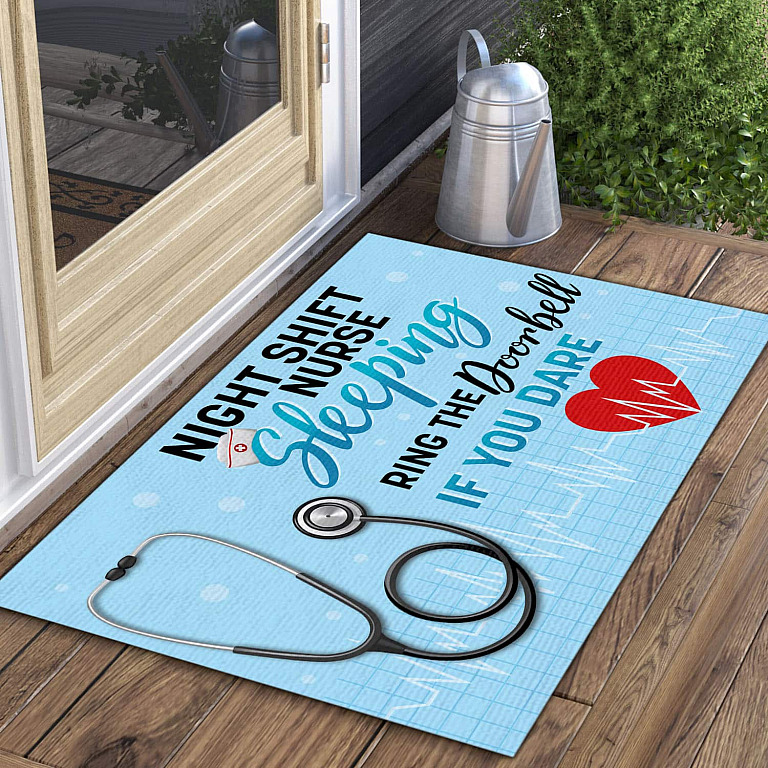 Let’s Shop Night Shift Nurse Sleeping Ring The Door Bell If You Dare Indoor Doormat – Funny ER Nurse Outdoor Door Mat!