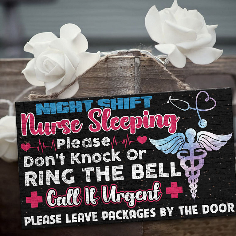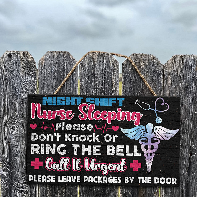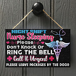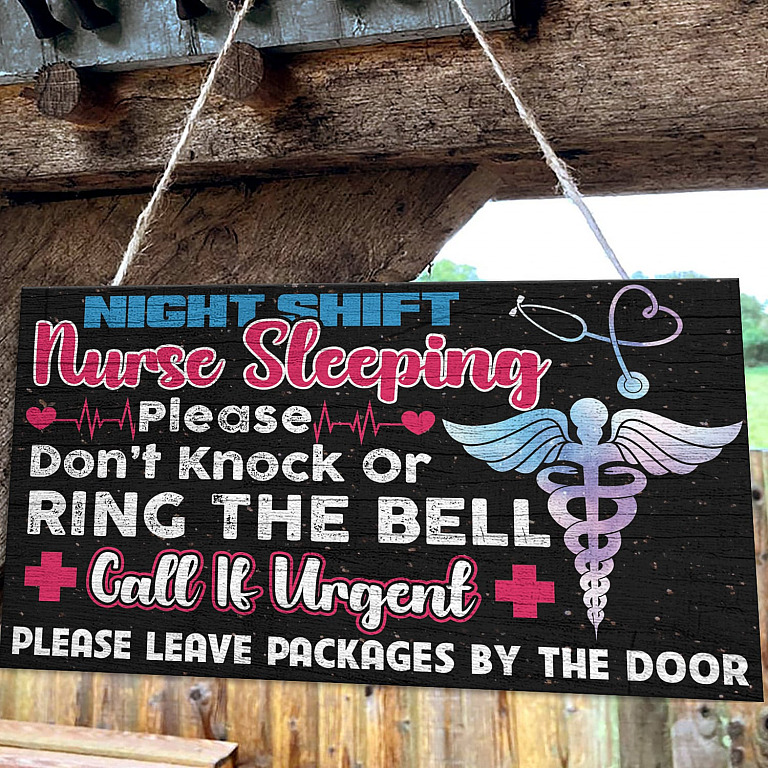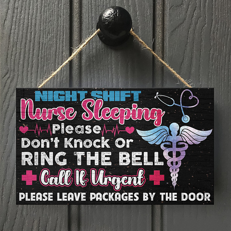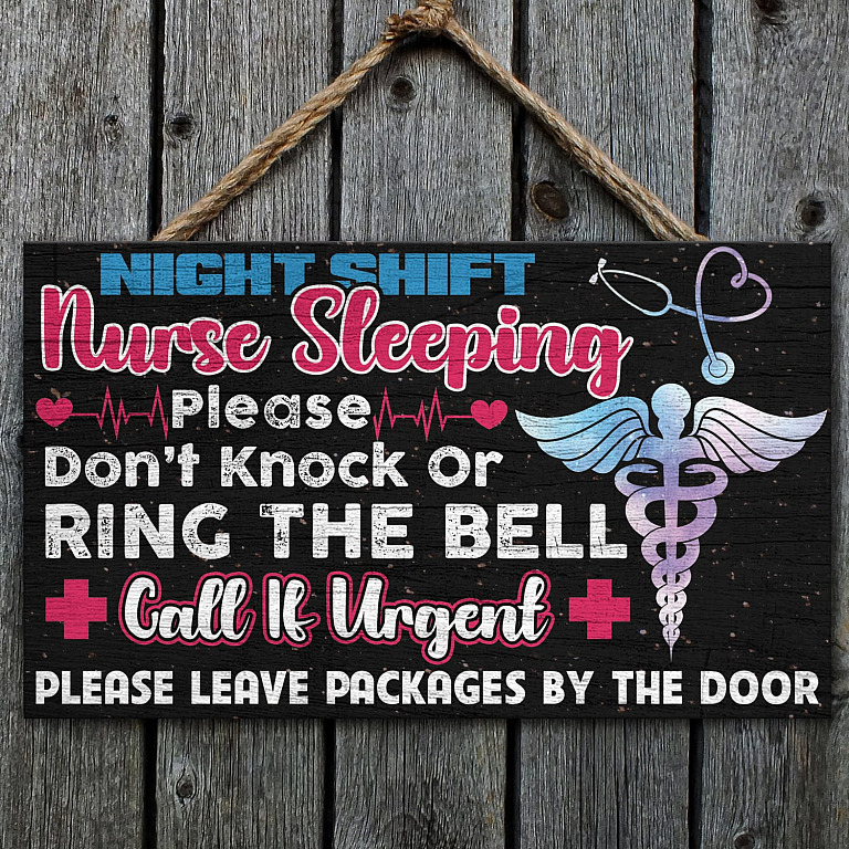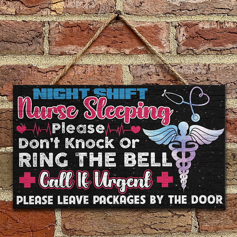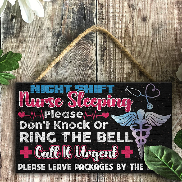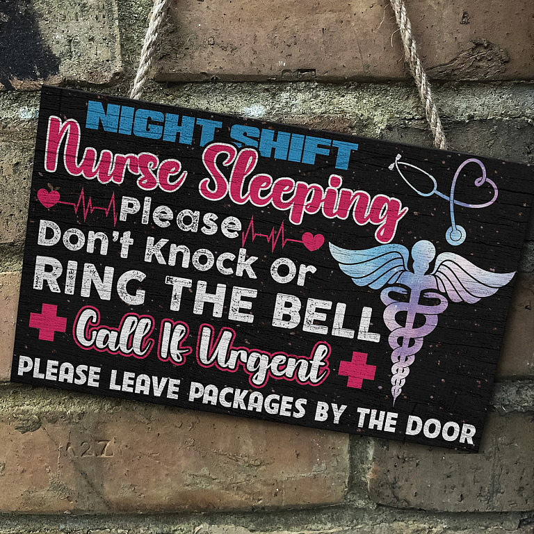 Let’s Shop Night Shift Nurse Sleeping Please Don’t Knock Or Ring The Bell Decorative Rectangle Wooden Door Sign!