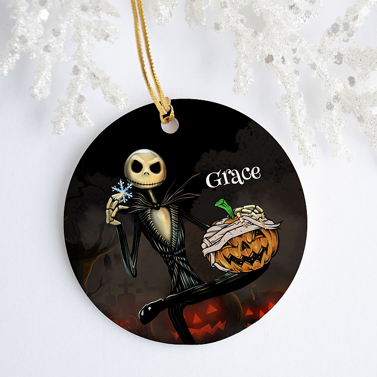 Let’s Shop Personalized Jack Skellington Christmas Circle Ornament – Holiday Nightmare Gift!