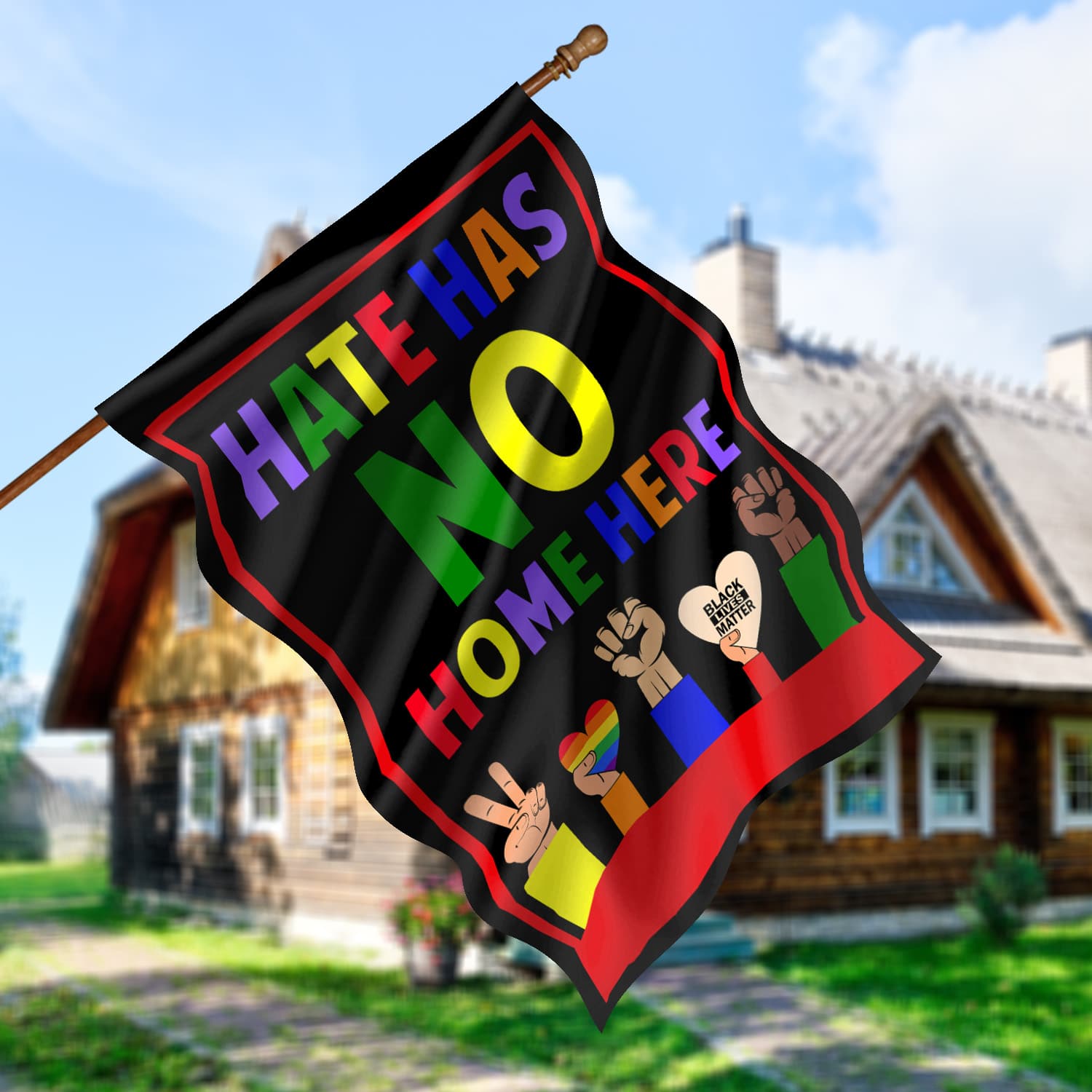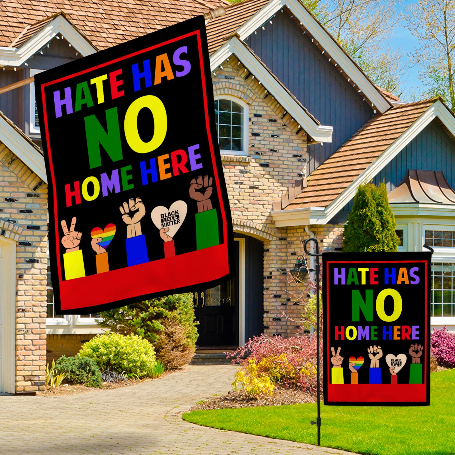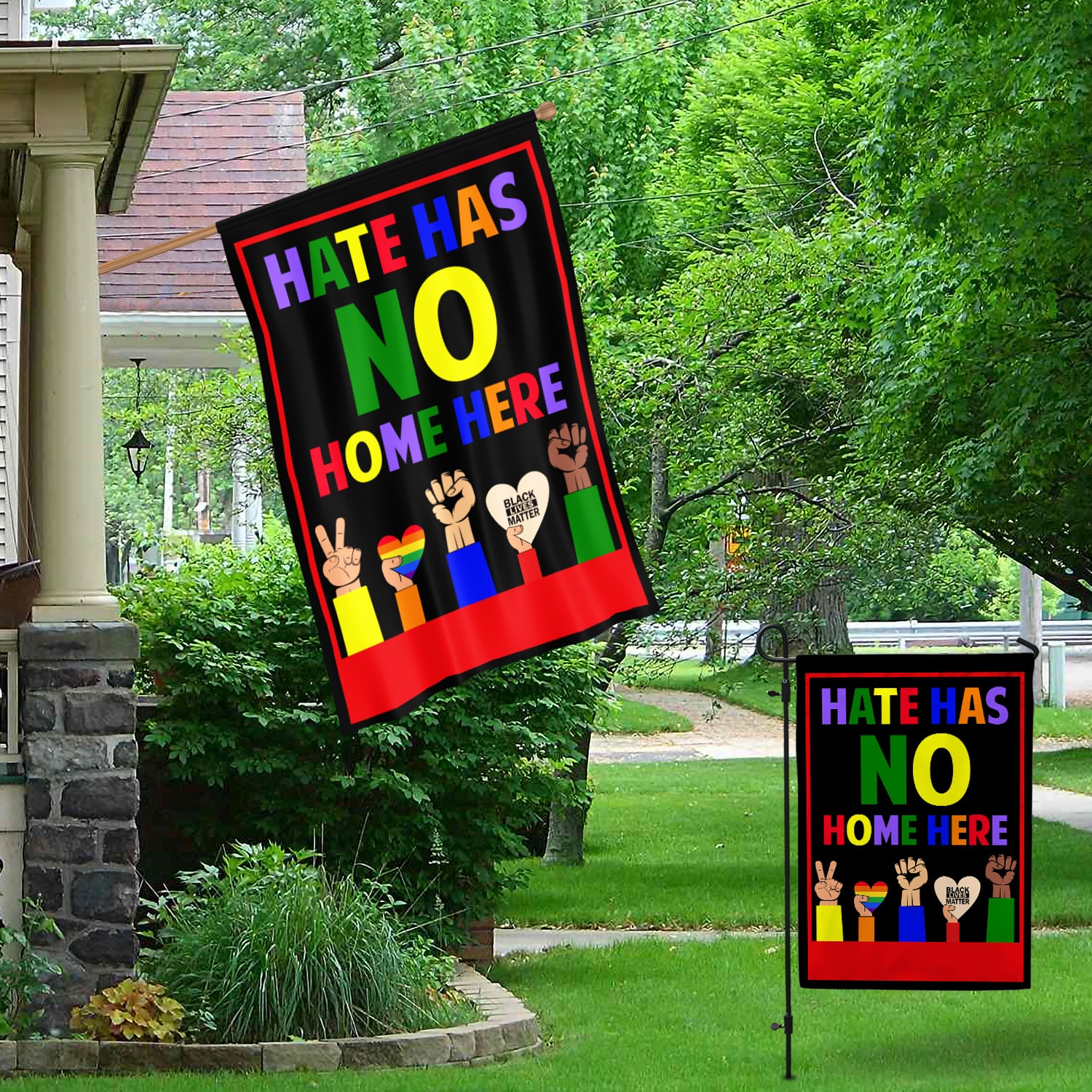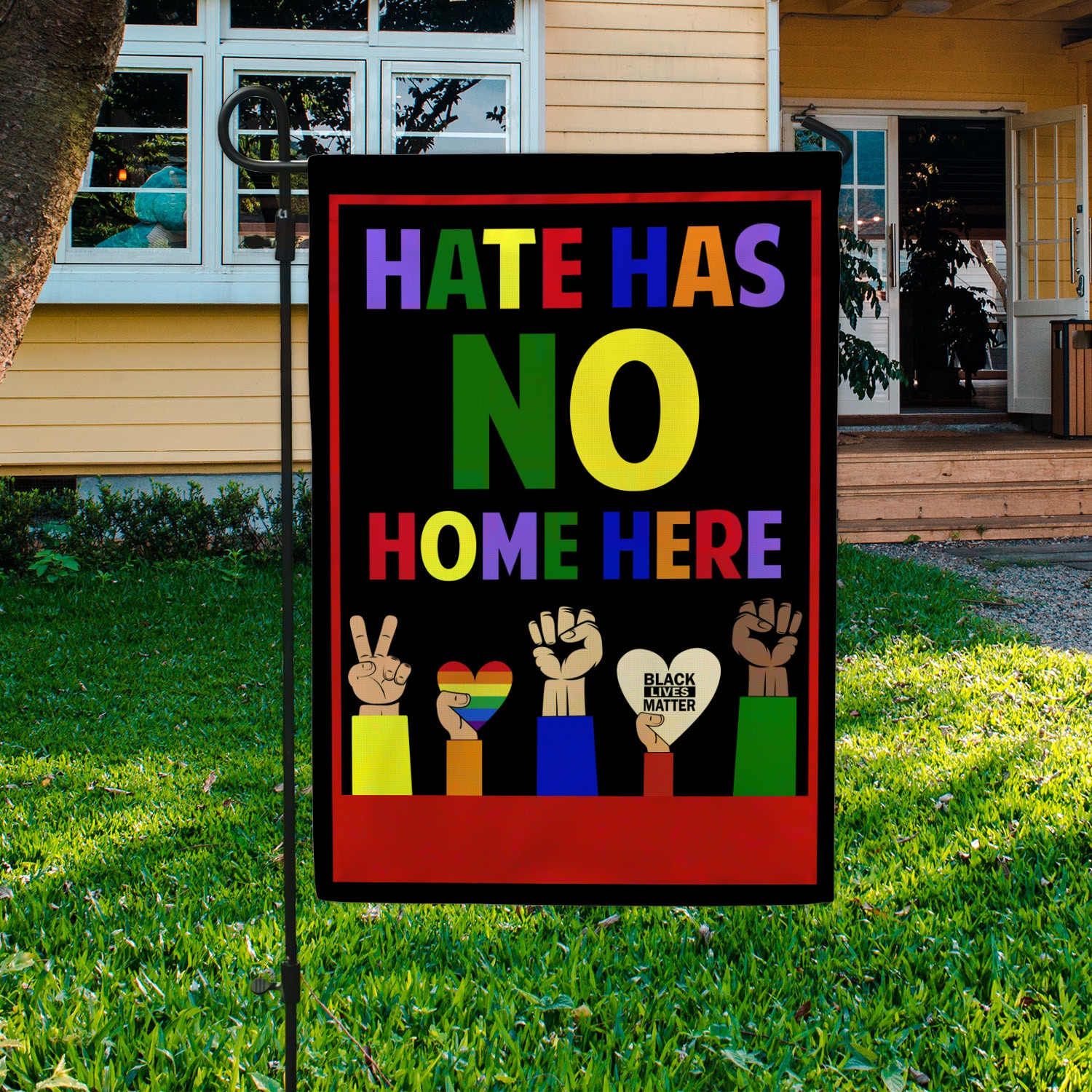 Let’s Shop Hate Has No Home Here Fist Hands Black LGBT Decorative Garden Flag – Indoor Outdoor Flag – House Flag!