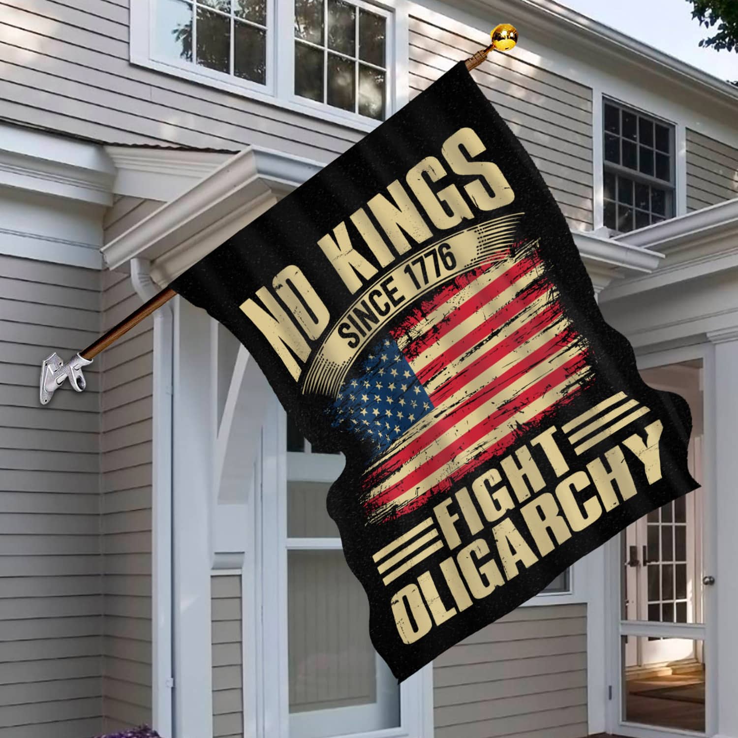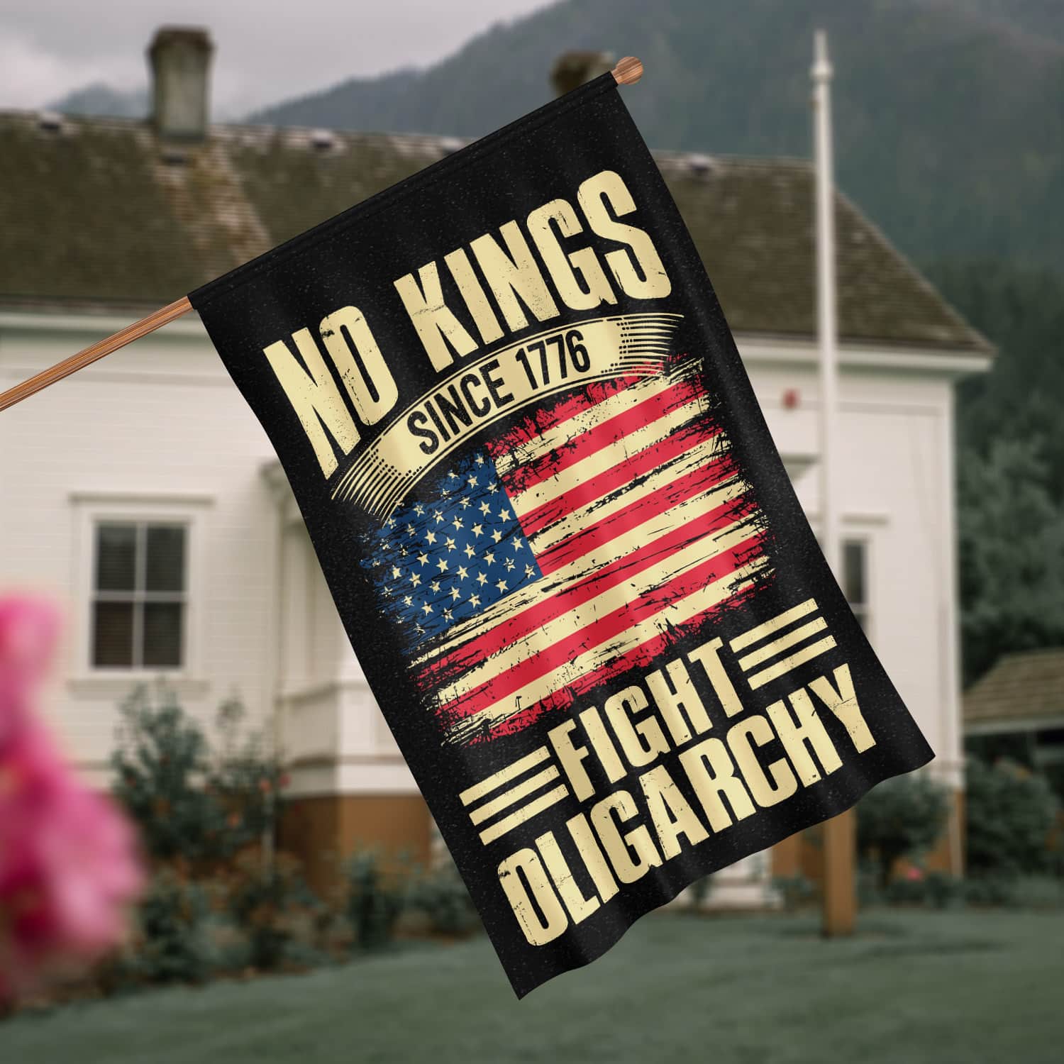 Let’s Shop No Kings Since 1776 Fight Oligarchy Political Outdoor House Flag – Home Garden Flag!