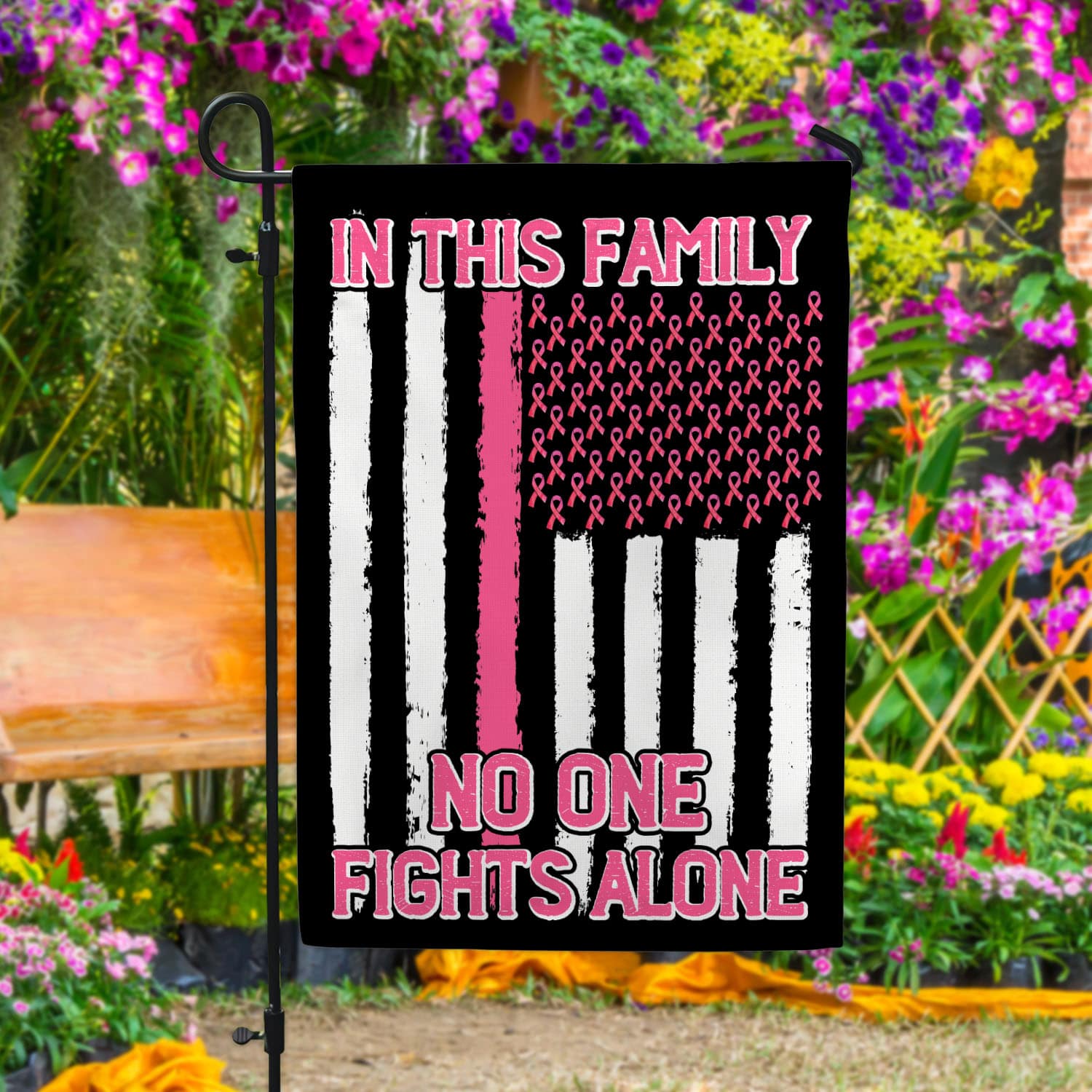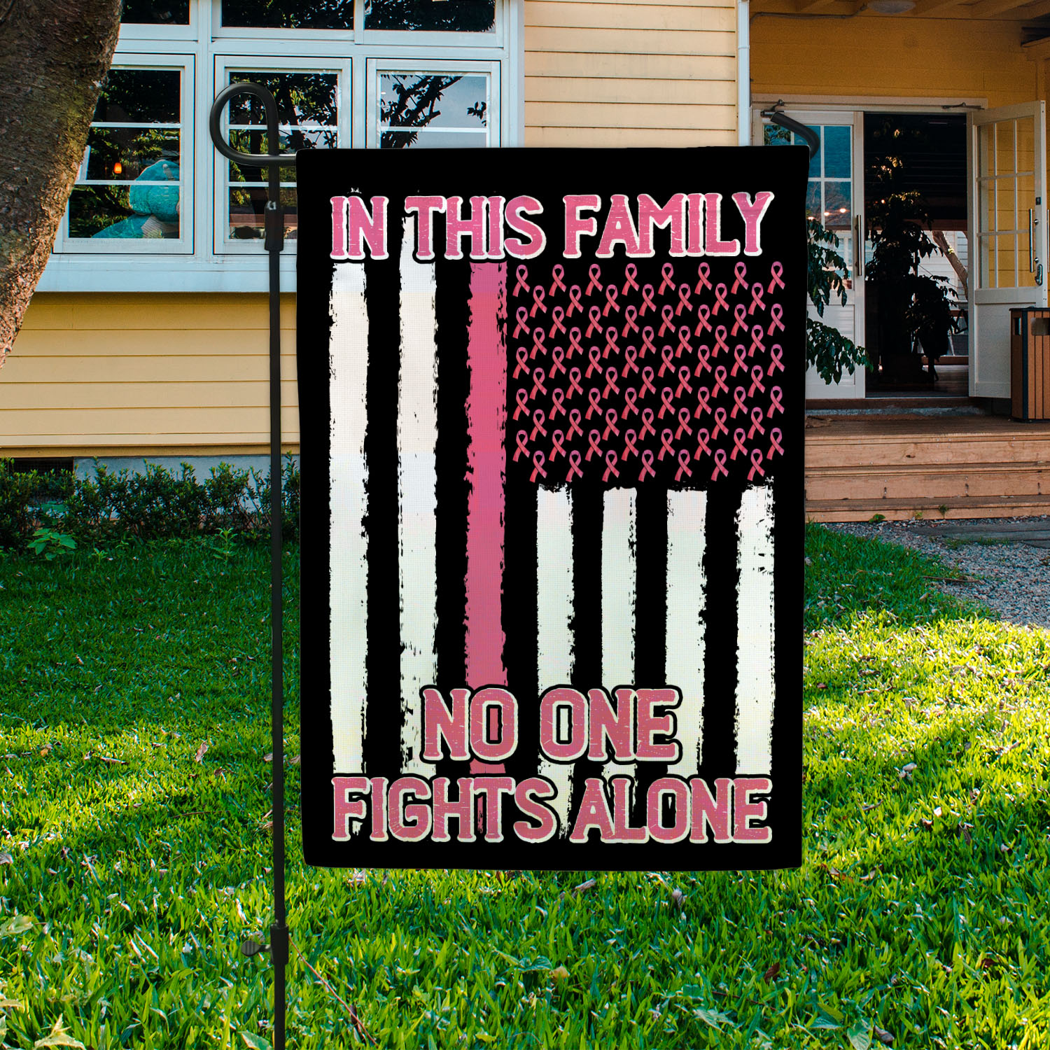 Let’s Shop In This Family No One Fights Alone Breast Cancer American Flag Garden Flag – Pink Ribbon House Flag!