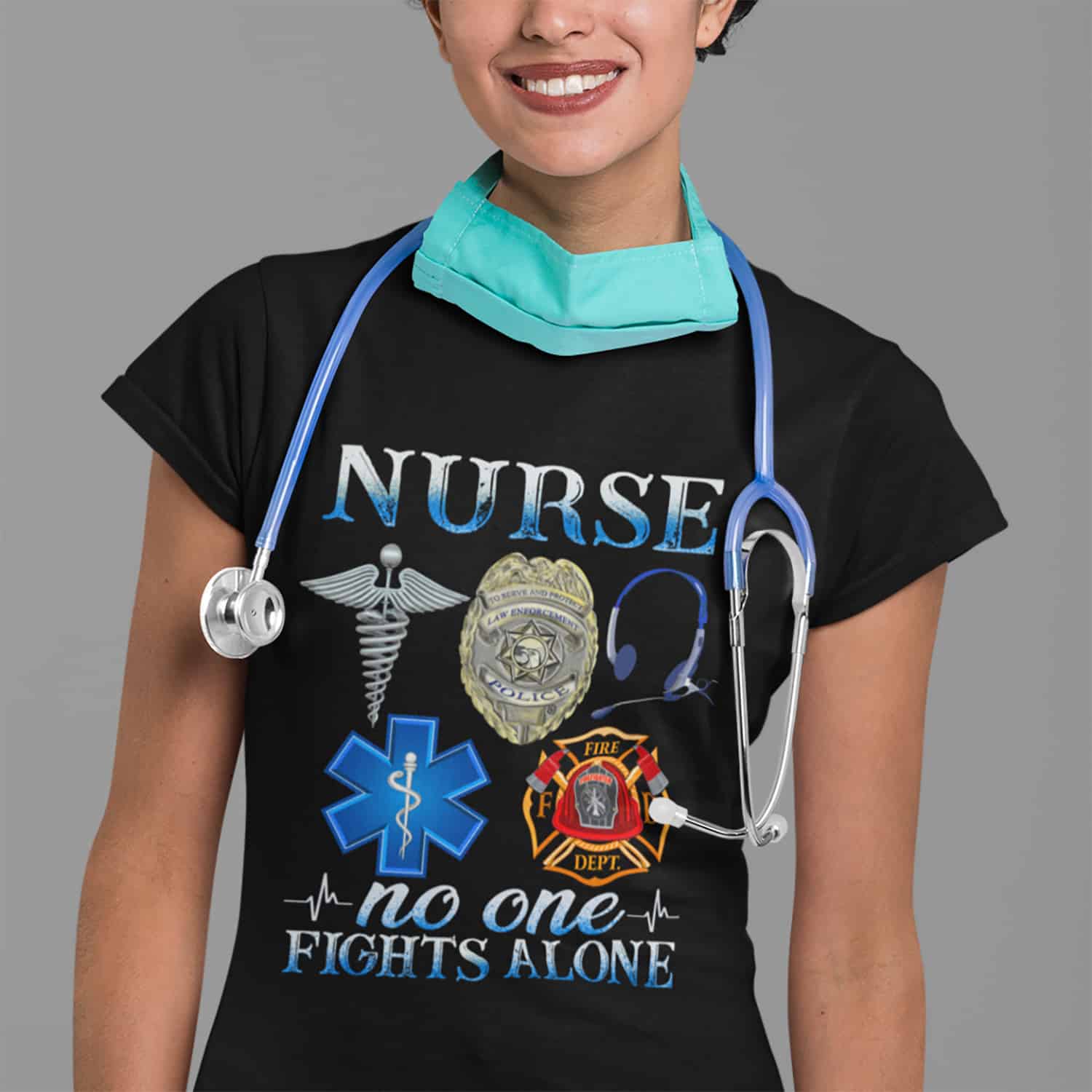 Are you spending too much time to find creative merchandise for you or suitable & special gifts for your mommy, your daddy, your son, your daughter, your children, your friends or someone you love? The struggle is over because we have various Nurse No One Fights Alone T-shirt – V-neck Tee, No One Fights Alone Shirt, Police Shirt, Firefighter Shirt, Nurse Shirt, EMS Shirt, EMT Shirt, Paramedic Shirt, Dispatch Shirt, Dispatcher Shirt, Corrections Shirt, First Responder Shirt which will make perfect presents for your beloveds. In order to make your present stand out, we have created lots of unique and awesome customized photo gifts & personalized designs.
