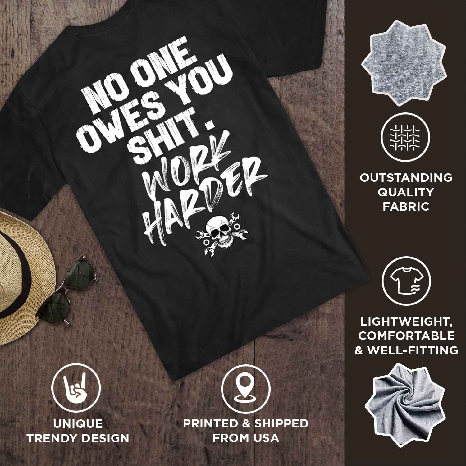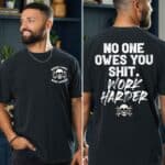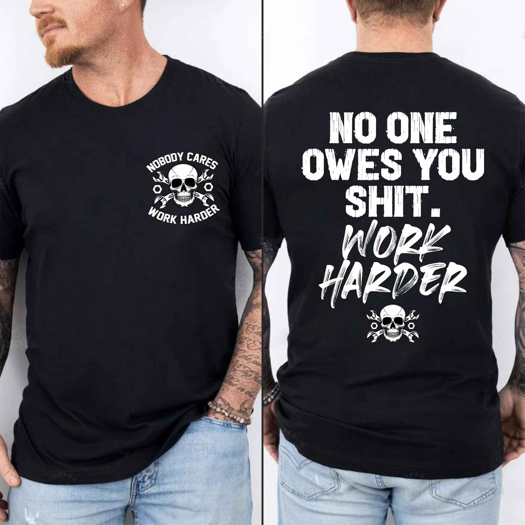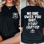 No One Owes You Shit Work Harder Funny Skull Motivation Printed On 2 Sides T-Shirt