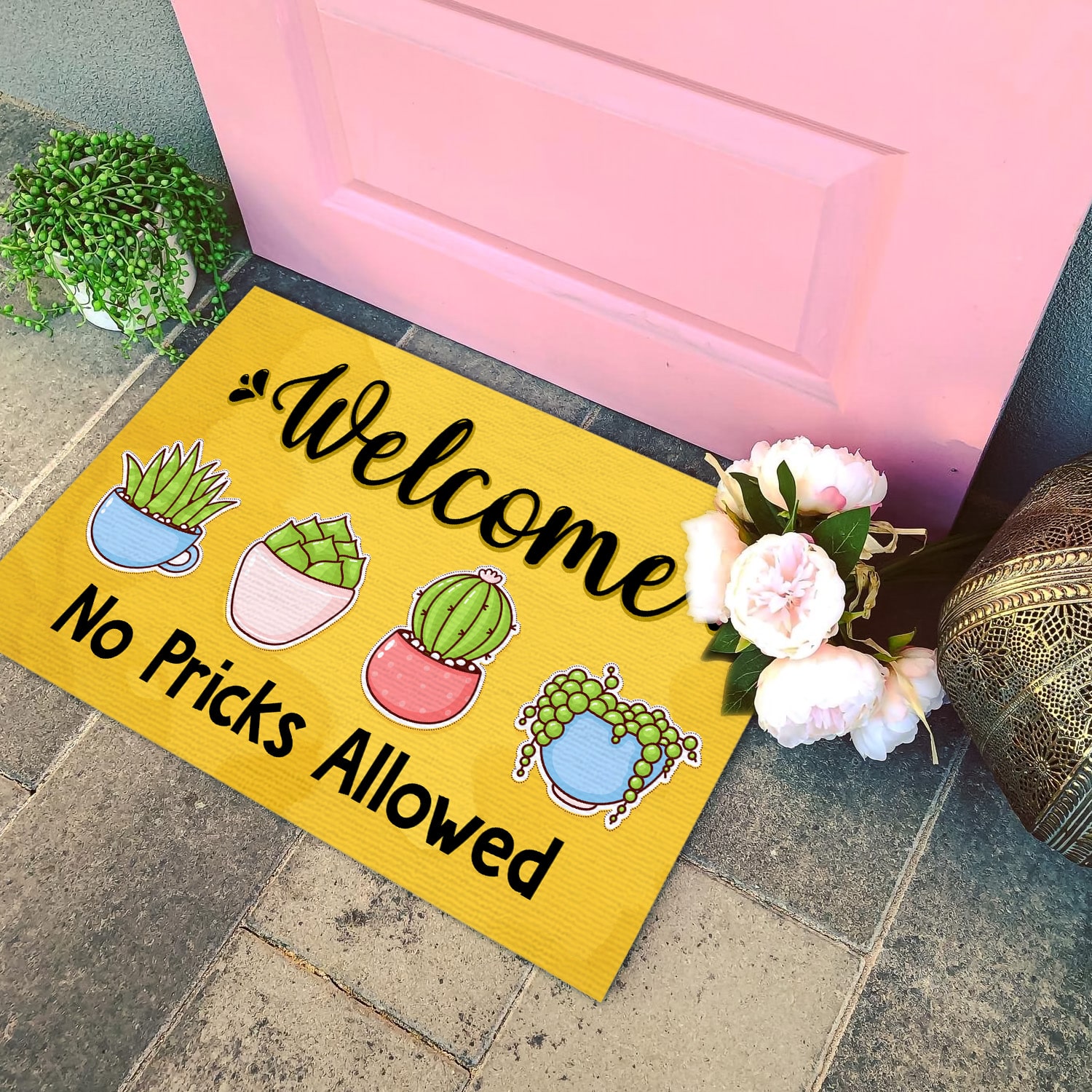 Let’s Shop No Pricks Allowed Indoor Outdoor Decorative Doormat!