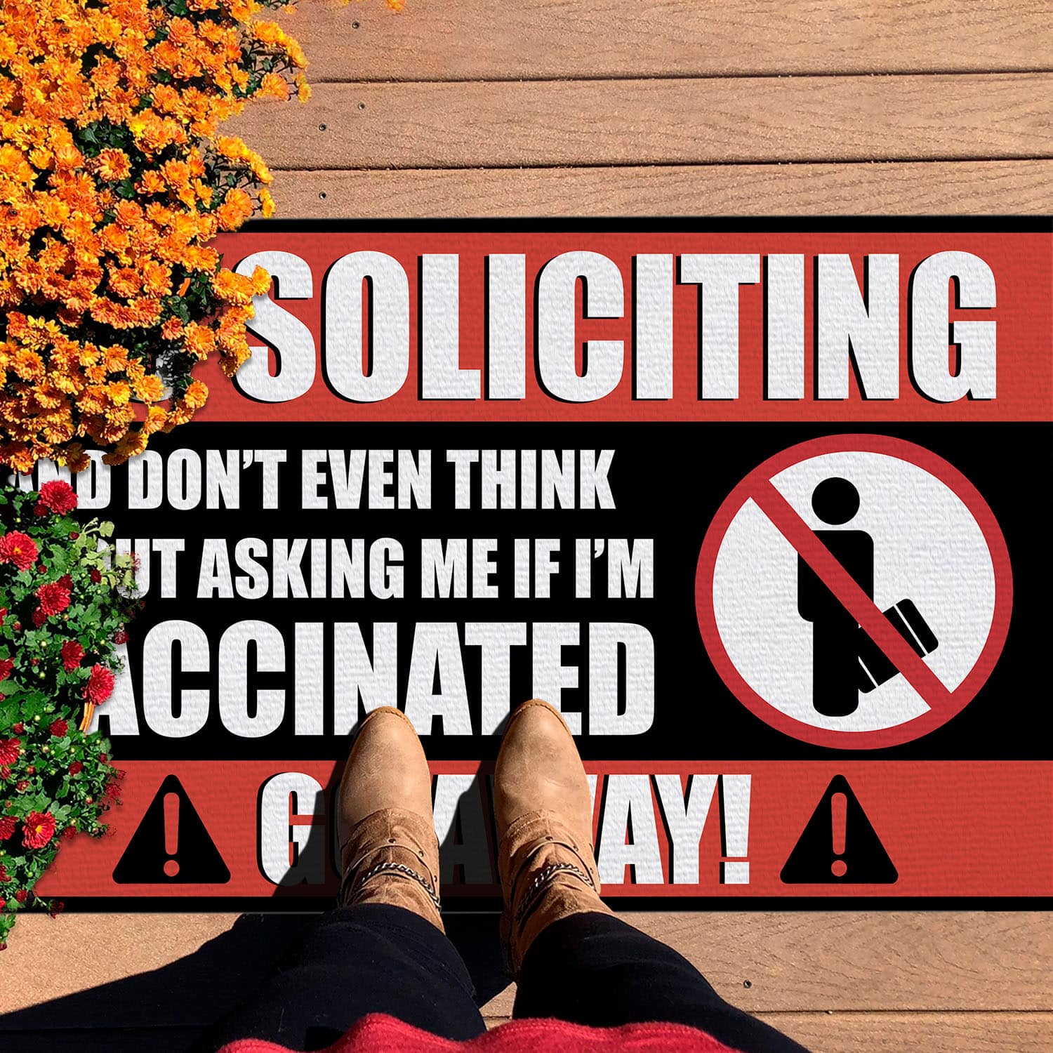 At CubeBik, besides custom doormats, we also offer tees, hoodies, sweaters, raglans, tanks, wall arts, canvases, posters, mugs, blankets, engraved jewelry, personalized necklaces, printed face masks, throw pillows, flags, tote bags, hats, accessories and more on our website, so do not miss our other No Soliciting and Don’t Even Think About Asking Me if I’m Vaccinated Go Away, No Soliciting Sign for House, No Soliciting Signs for Home, No Soliciting Yard Sign, Do Not Knock Sign, No Soliciting Funny Sign, No Soliciting Door Sign, No Soliciting No Trespassing Sign, No Soliciting in Spanish, No Soliciting Sign for House related merchandise. Moreover, all the products are made-to-order and one of a kind custom designs you can’t get elsewhere in normal stores. Let’s discover CubeBik.com now and find your favorite personalized items. We can’t wait to surprise and build beautiful memories with you and your loved ones.