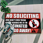 Are you spending too much time to find creative merchandise for you or suitable & special gifts for your mommy, your daddy, your son, your daughter, your children, your friends or someone you love? The struggle is over because we have various No Soliciting and Don’t Even Think About Asking Me if I’m Vaccinated Go Away, No Soliciting Sign for House, No Soliciting Signs for Home, No Soliciting Yard Sign, Do Not Knock Sign, No Soliciting Funny Sign, No Soliciting Door Sign, No Soliciting No Trespassing Sign, No Soliciting in Spanish, No Soliciting Sign for House which will make perfect presents for your beloveds. In order to make your present stand out, we have created lots of unique and awesome customized photo gifts & personalized designs.