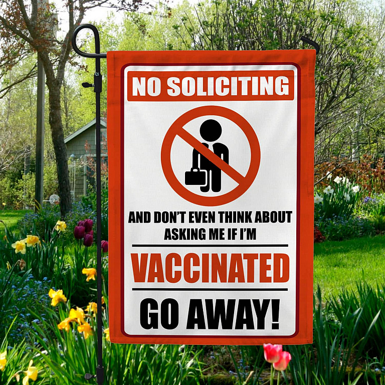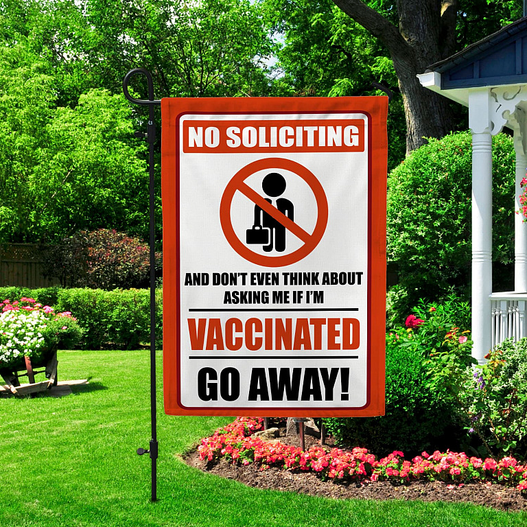Let’s Shop No Soliciting And Don’t Even Think About Asking Me If I’m Vaccinated Go Away Garden Flag – House Flag!