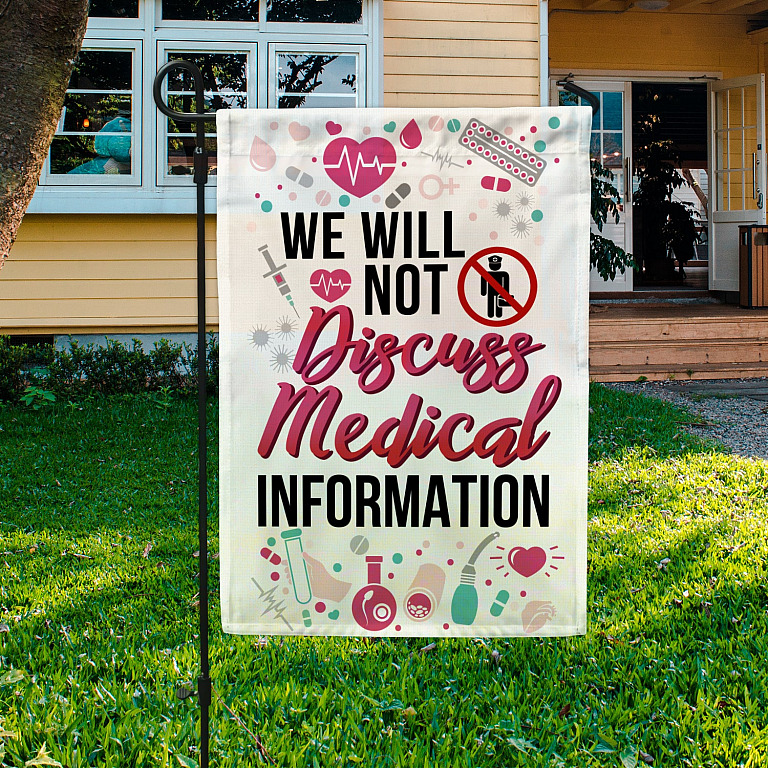 Let’s Shop We Will Not Discuss Medical Information Decorative Garden Flag – Indoor Outdoor Flag – House Flag!