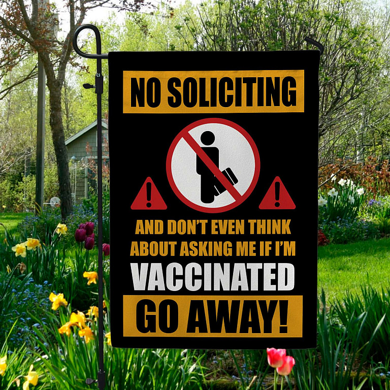 Let’s Shop No Soliciting and Don’t Even Think About Asking Me if I’m Vaccinated Go Away Garden Flag – House Flag!