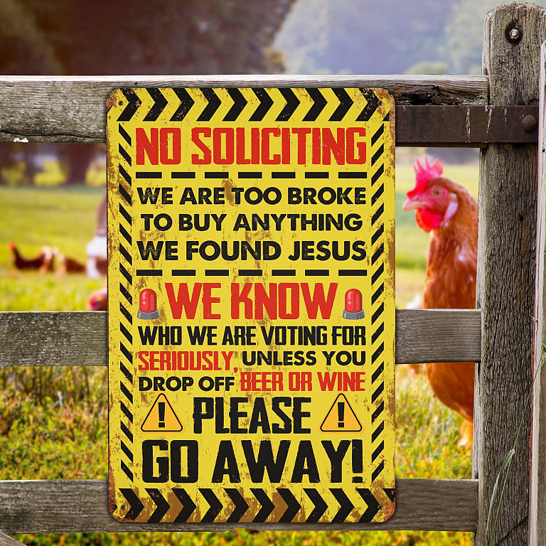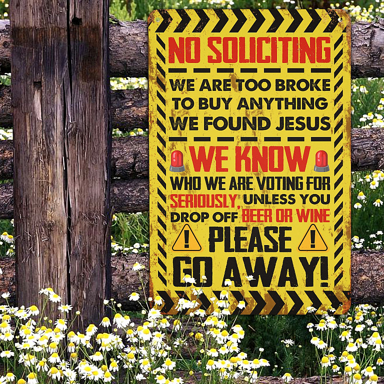 At CubeBik, besides custom decorative metal signs, we also offer tees, hoodies, sweaters, raglans, tanks, wall arts, canvases, posters, mugs, blankets, engraved jewelry, personalized necklaces, flags, throw pillows, tote bags, hats, accessories and more on our website, so do not miss our other No Soliciting Don’t Make It Weird, No Soliciting Please, No Soliciting or Trespassing Sign, Please Go Away Sign, No Soliciting We Are Too Broke to Buy Anything, We Found Jesus, No Soliciting We Found Jesus related merchandise. Moreover, all the products are made-to-order and one of a kind custom designs you can’t get elsewhere in normal stores. Let’s discover CubeBik.com now and find your favorite personalized items. We can’t wait to surprise and build beautiful memories with you and your loved ones.