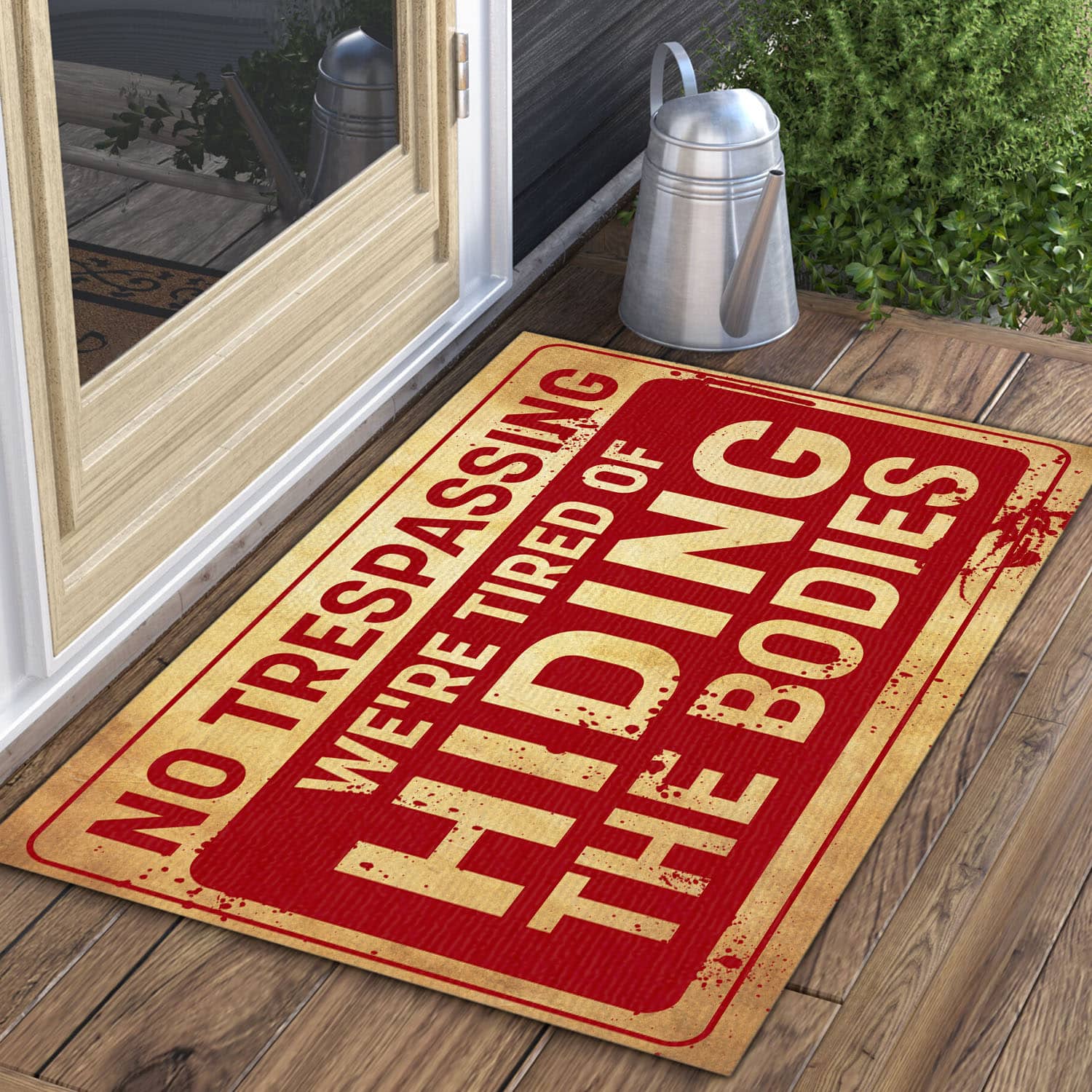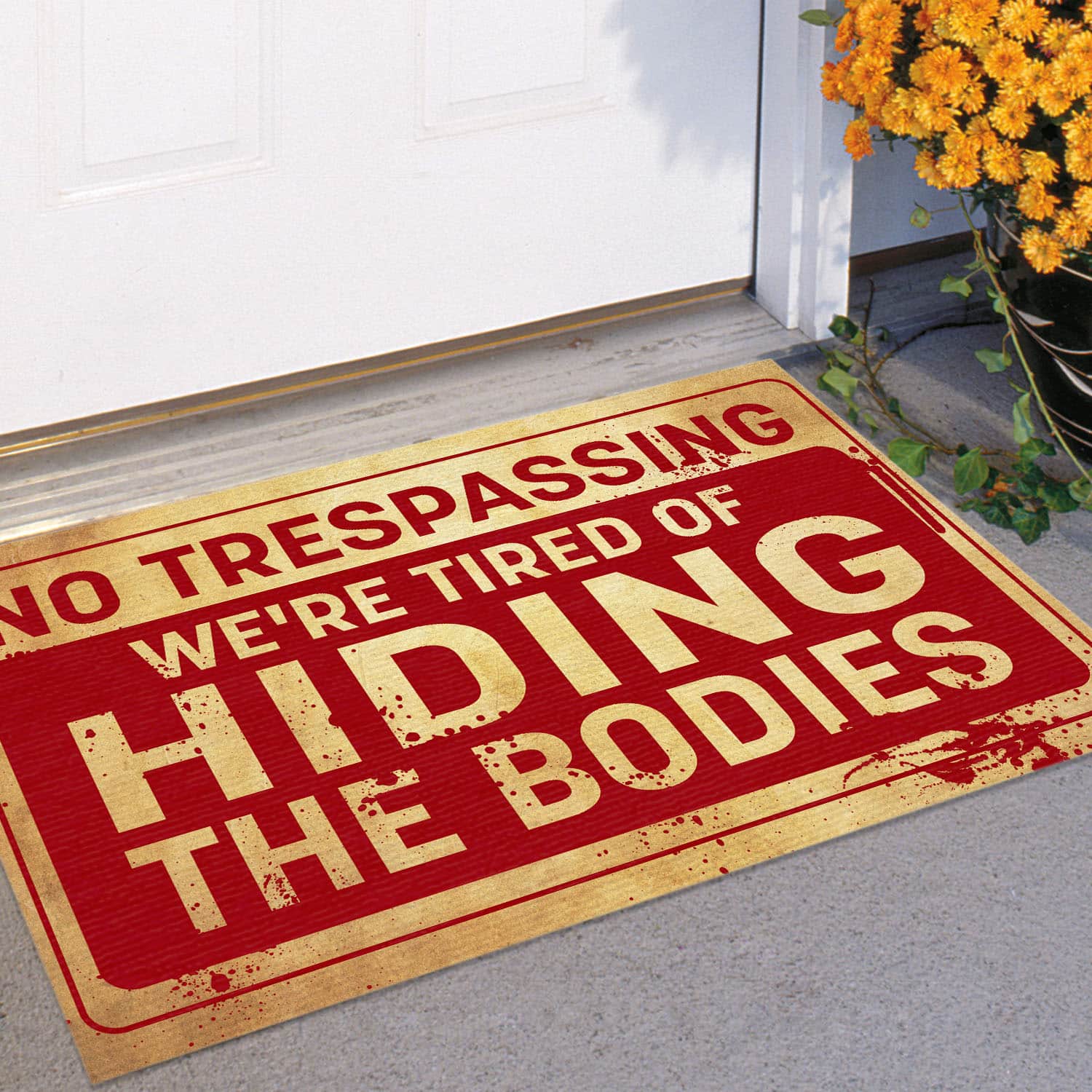 Let’s Shop No Trespassing We’re Tired Of Hiding The Bodies Indoor Doormat – Funny No Trespassing Halloween Doormat!