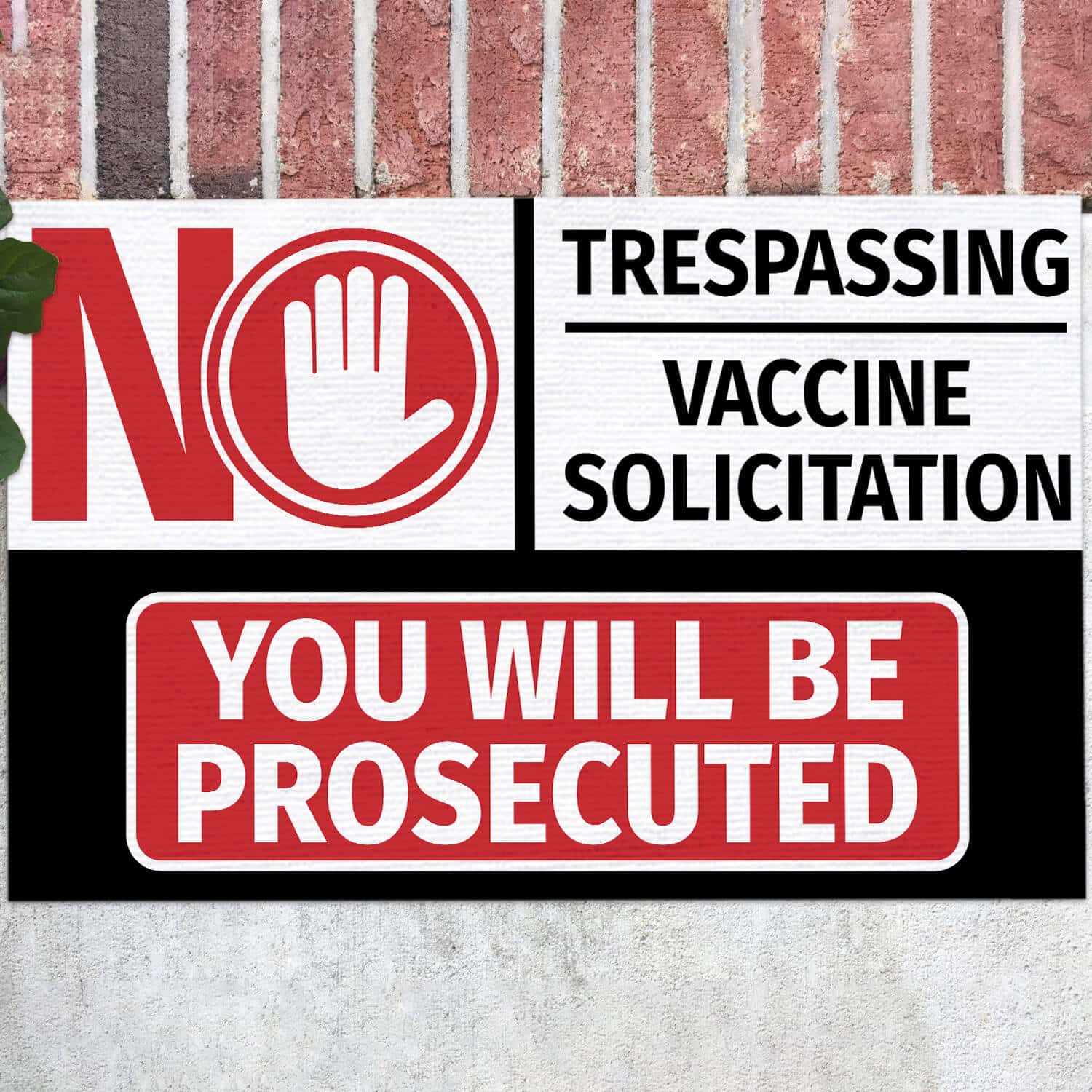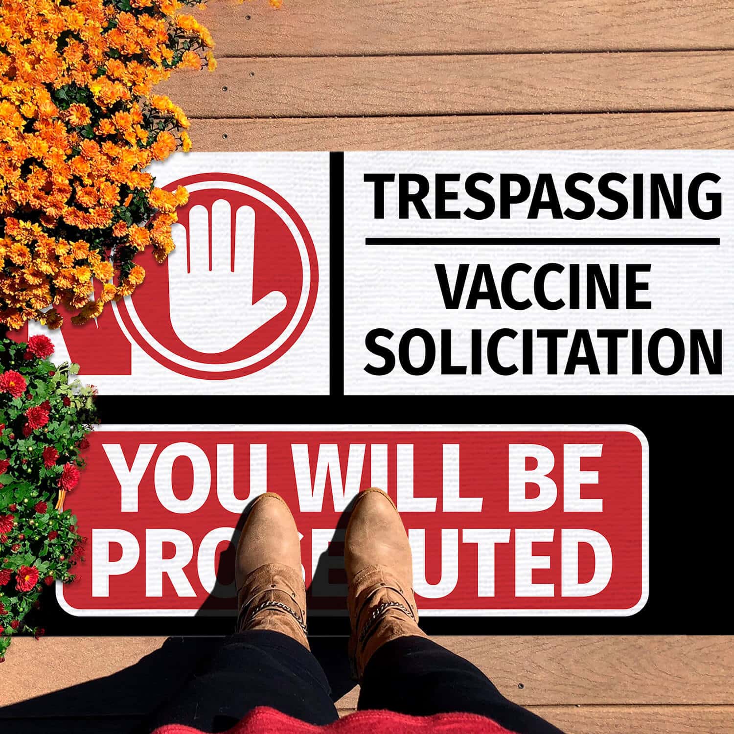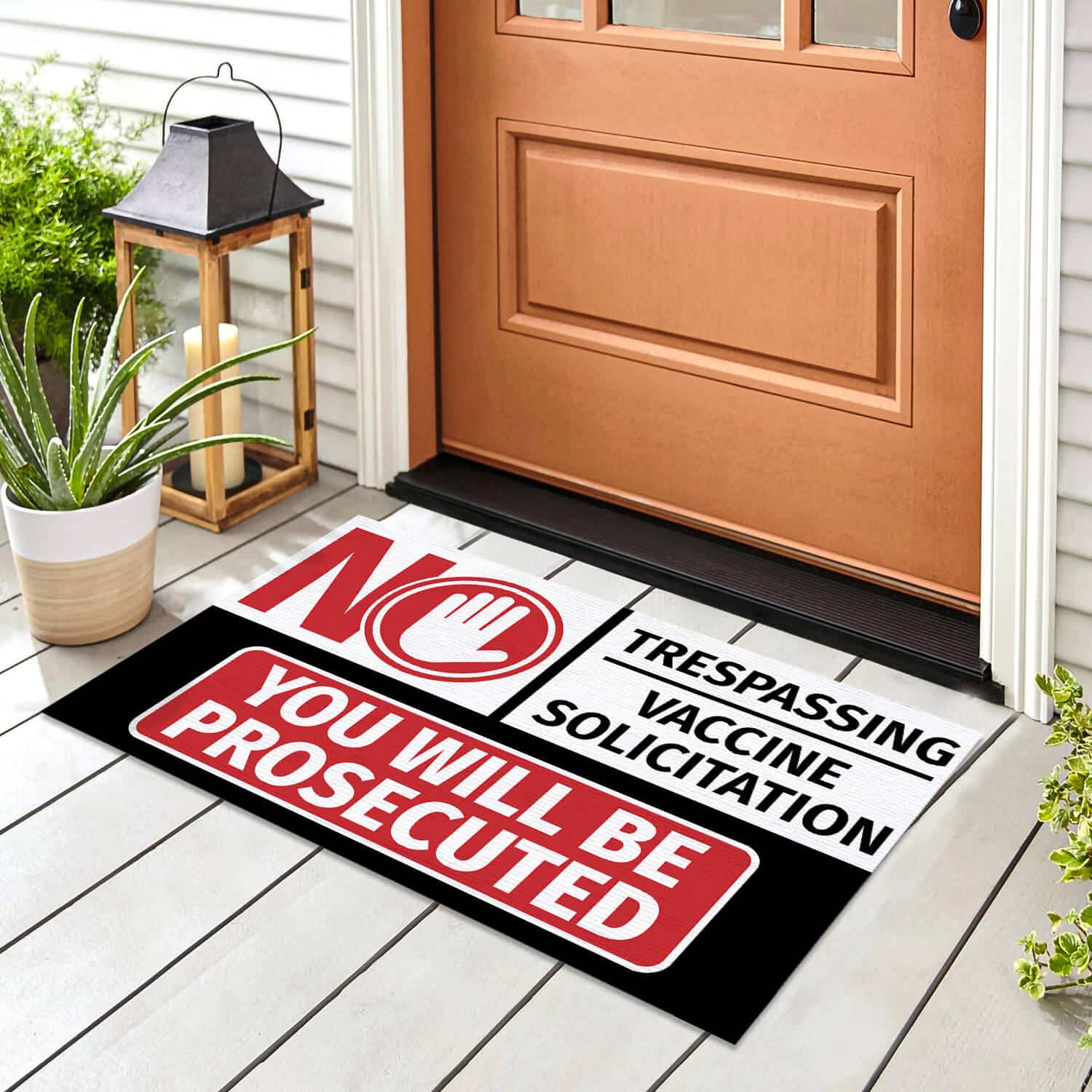 Let’s Shop No Trespassing No Vaccine Solicitation Indoor Outdoor Decorative Doormat – No Biden Vaccination Doormat!