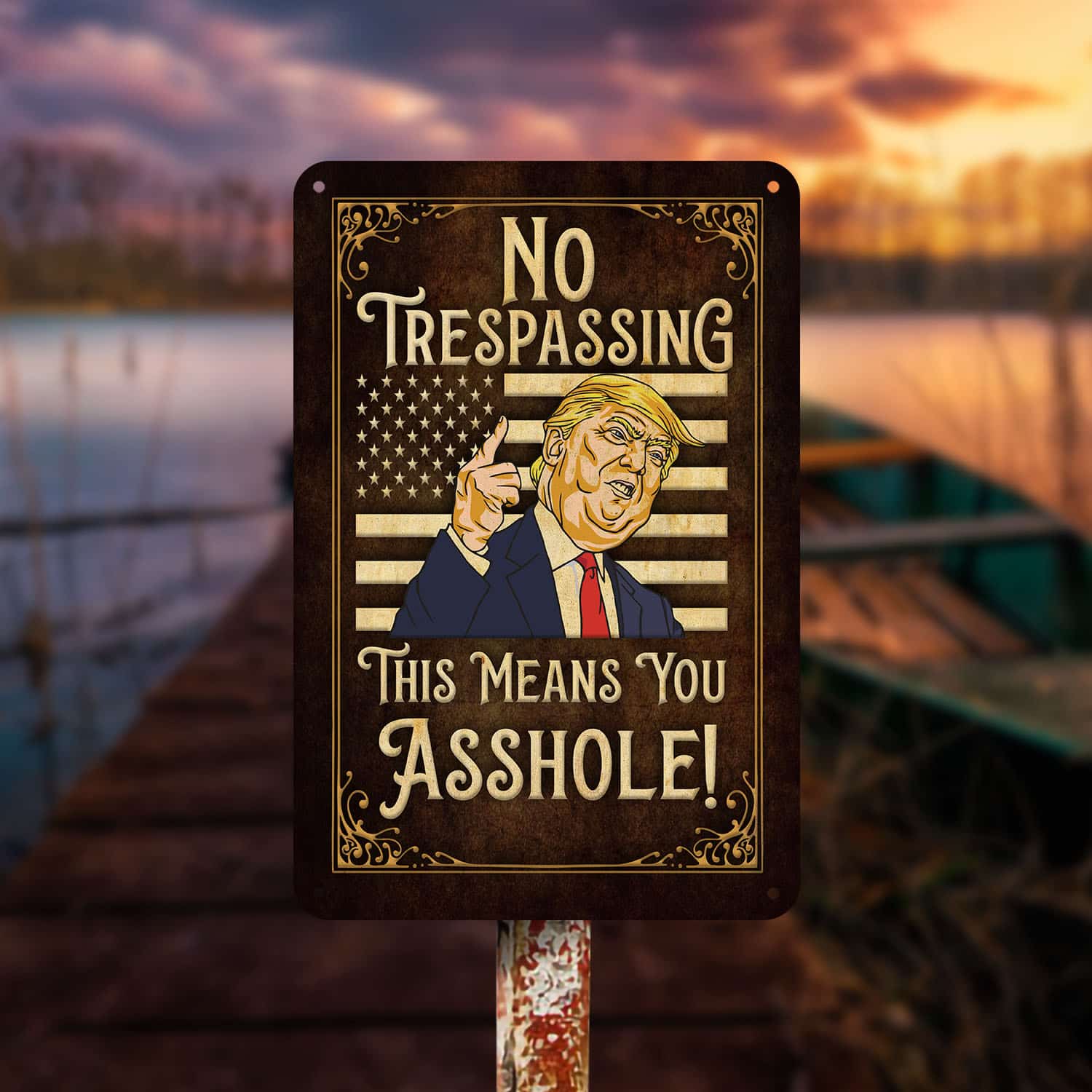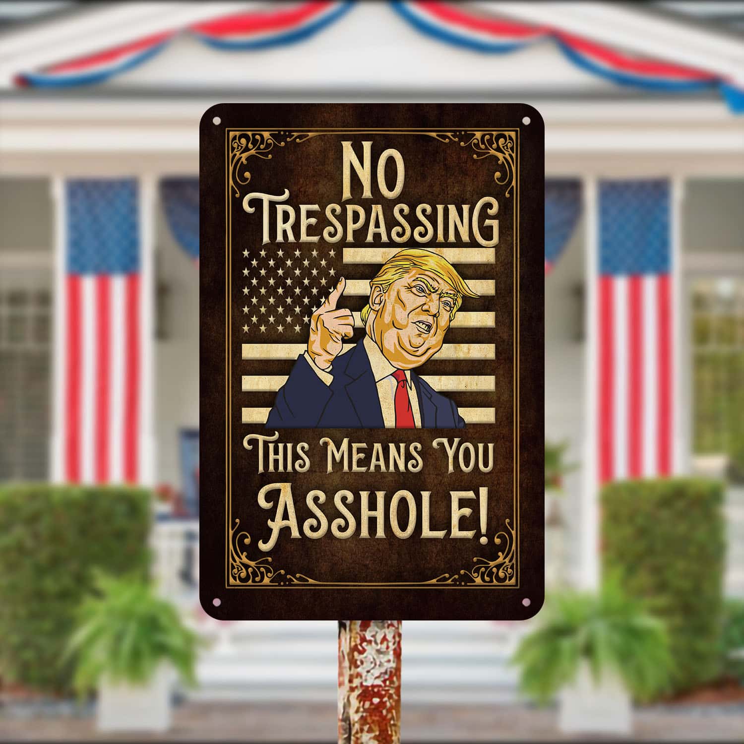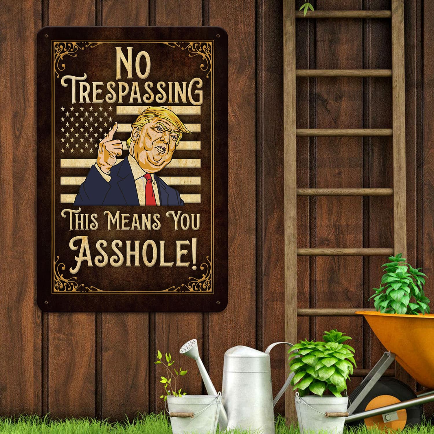 Let’s Shop No Trespassing This Means You Metal Sign – No Trespassing Trump Sign – Funny Trump Sign!