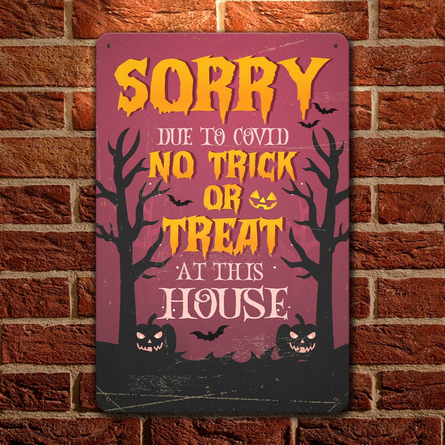 At CubeBik, besides decorative metal signs, we also offer tees, hoodies, sweaters, raglans, tanks, wall arts, canvases, posters, mugs, blankets, engraved jewelry, personalized necklaces, flags, throw pillows, tote bags, hats, accessories and more on our website, so do not miss our other Trick or Treat Sign Social Distancing, Trick or Treat Social Distance Sign, Sorry No Trick or Treat Sign, Sorry No Trick or Treat at This House Sign, Sorry No Trick or Treating Sign related merchandise. Moreover, all the products are made-to-order and one of a kind custom designs you can’t get elsewhere in normal stores. Let’s discover CubeBik.com now and find your favorite personalized items. We can’t wait to surprise and build beautiful memories with you and your loved ones.