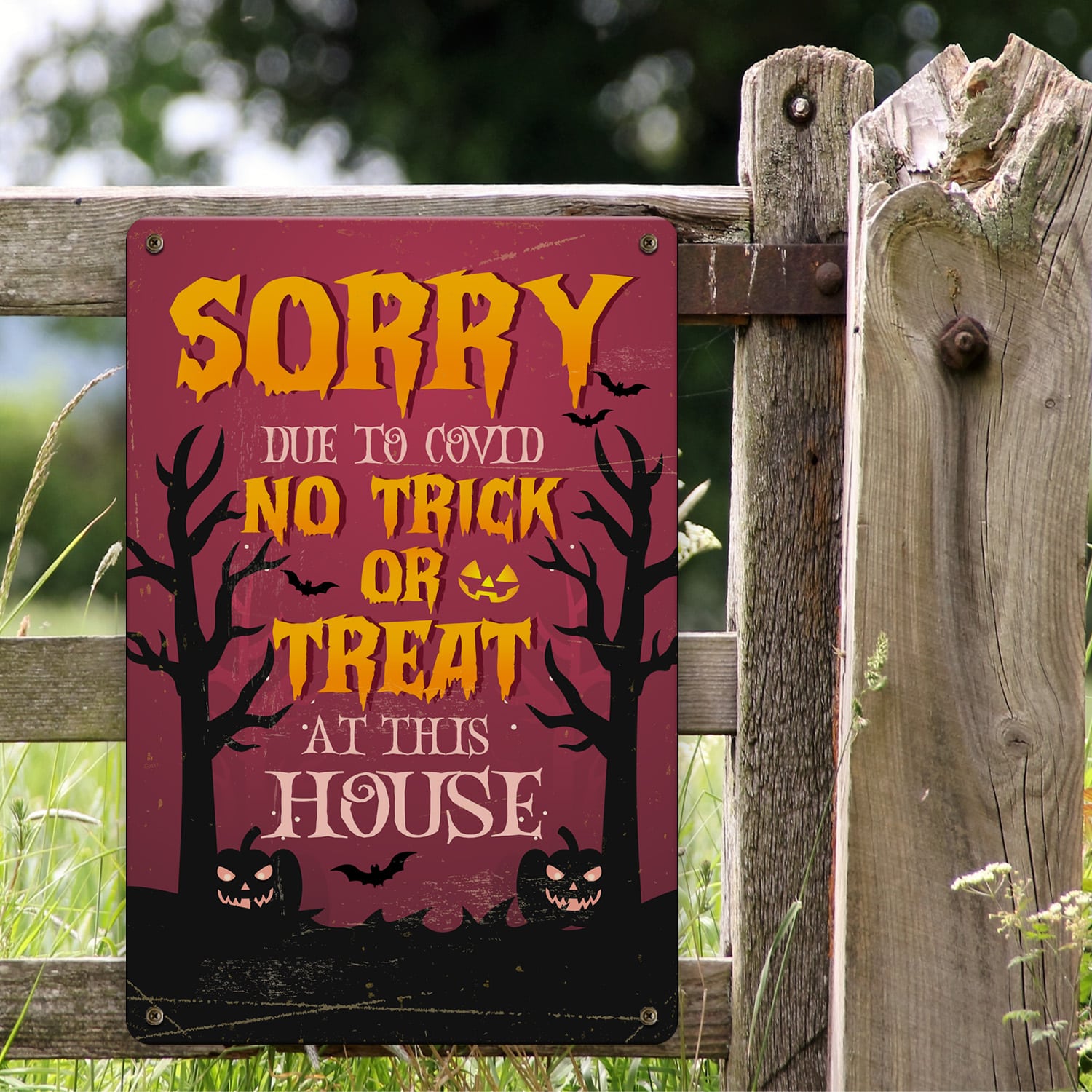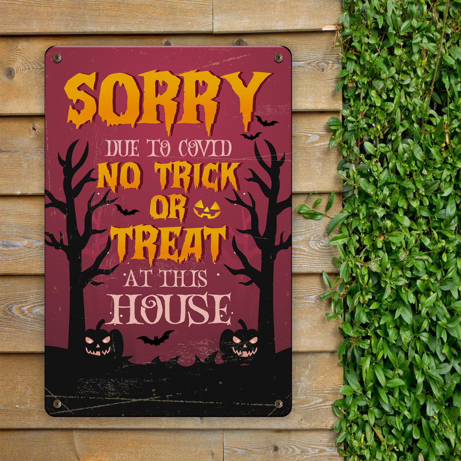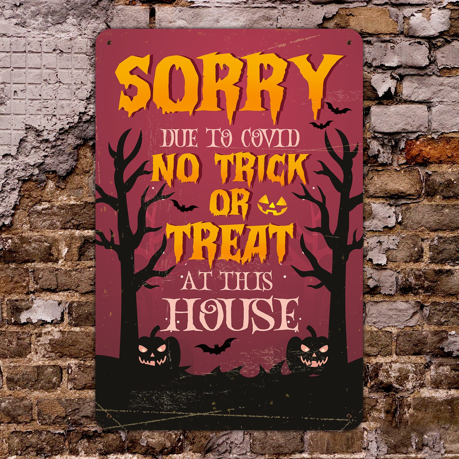 Let’s Shop Sorry No Trick or Treat At This House Decorative Metal Sign – Halloween Indoor Outdoor Decor!