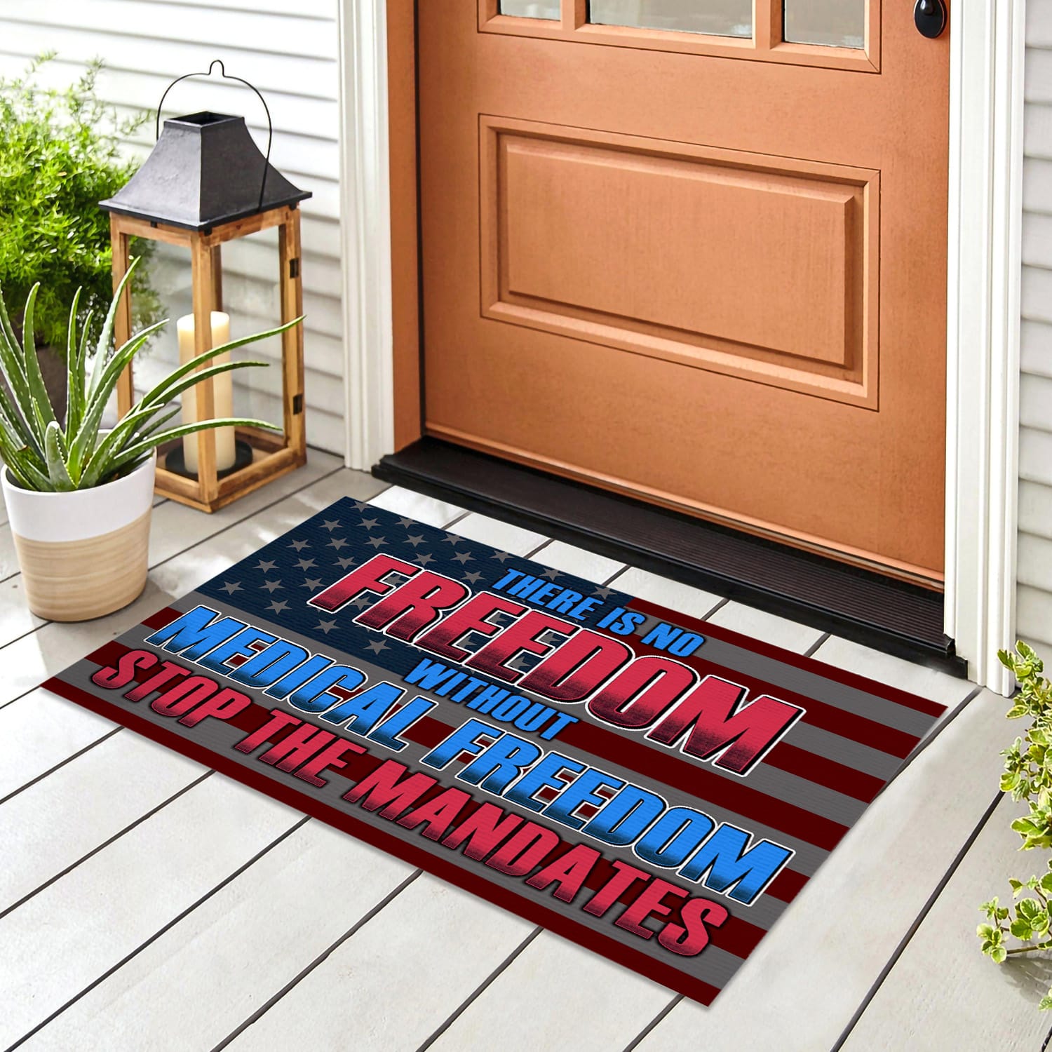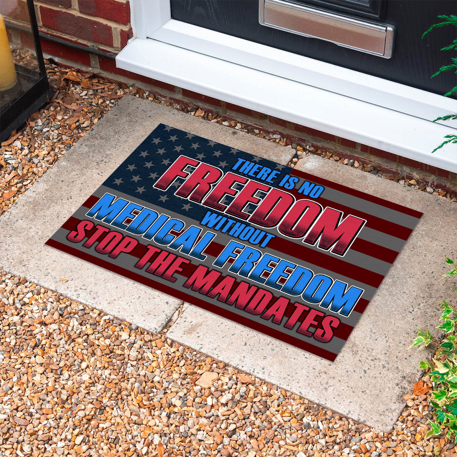 Let’s Shop There Is No Freedom Without Medical Freedom Stop the Mandates Doormat – Anti Vaccine Indoor Outdoor Doormat!