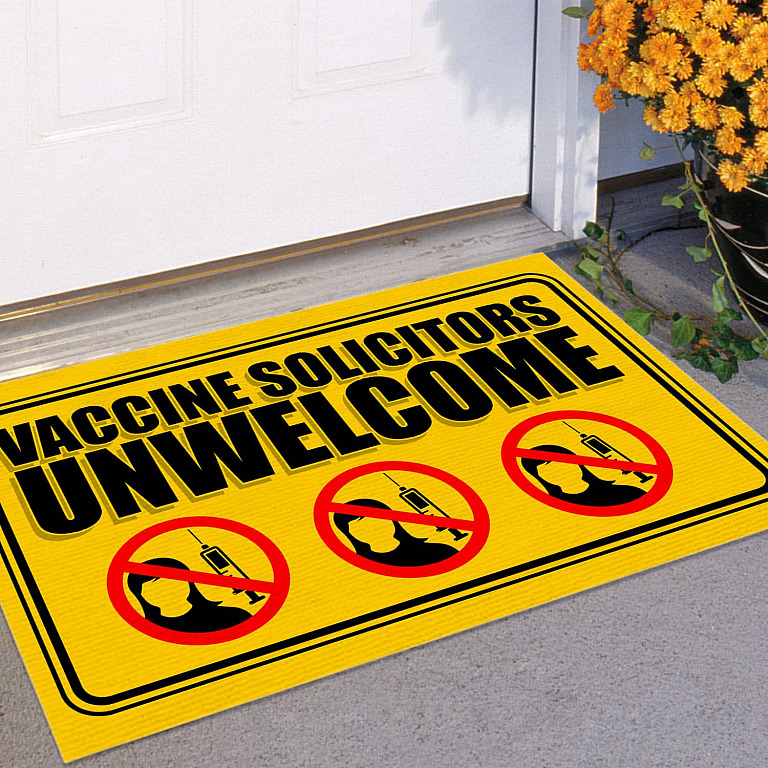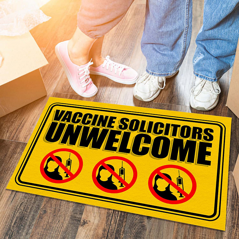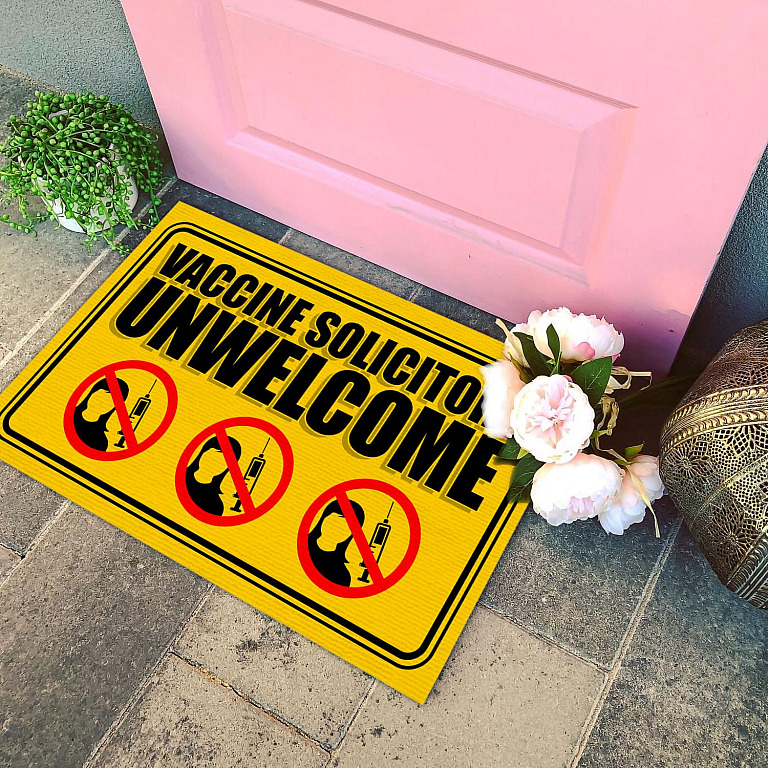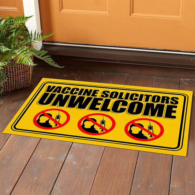 Let’s Shop Vaccine Solicitors Unwelcome Outdoor Indoor Doormat – Anti Vaccine Door Mat – Funny Anti-Vax Entry Rug!