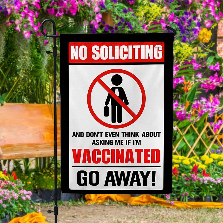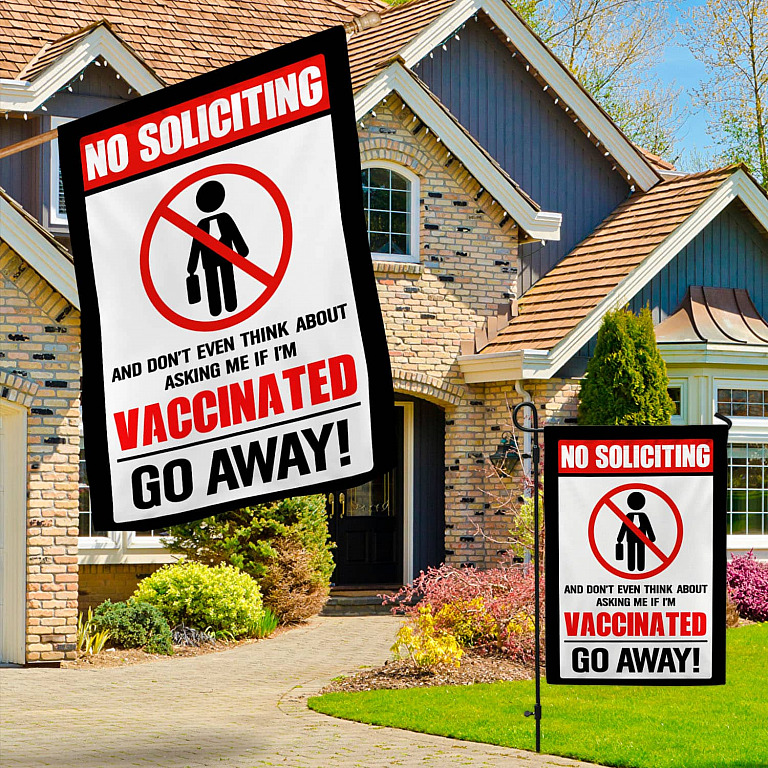 Let’s Shop No Soliciting And Don’t Even Think About Asking Me If I’m Vaccinated Go Away Garden Flag – House Flag!