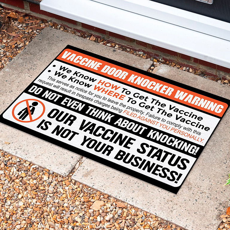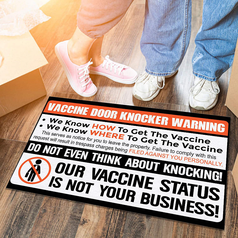 Let’s Shop Vaccine Door Knocker Warning No Vaccine Soliciting Indoor Outdoor Doormat – Anti Biden Vaccination Door Mat!