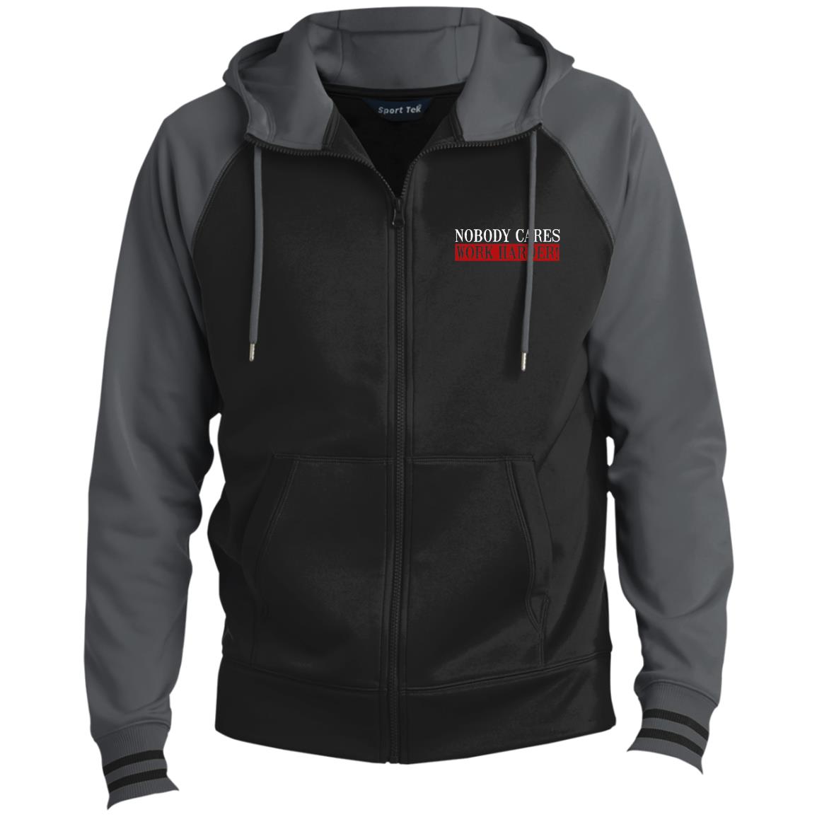 Nobody Cares Work Harder Motivational Fitness Workout Gym Premium Full-Zip Hooded Jacket-Fleece Letterman Jacket