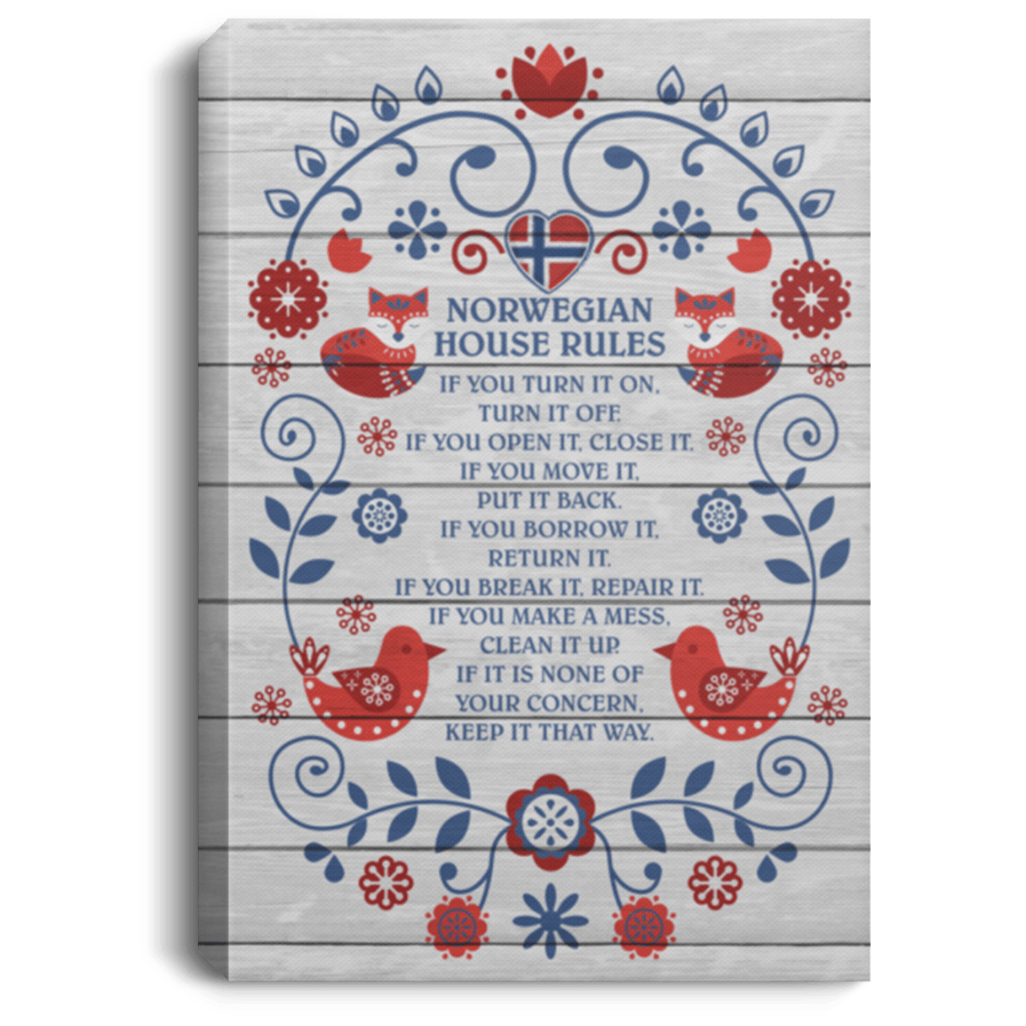 Shop Norwegian House Rule If-You Turn It On Turn-It Off Open It Close It Framed Canvas – Unframed Poster.