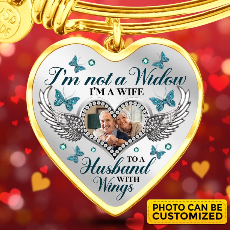 Let’s Shop Personalized Photo I’m Not A Widow I’m A Wife to A Husband with Wings Heart Pendant Necklace – Bangle!