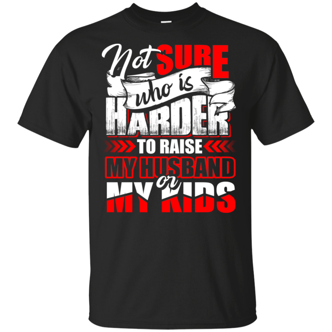 Not Sure Who Is Harder To Raise My Husband or My Kids T-Shirt