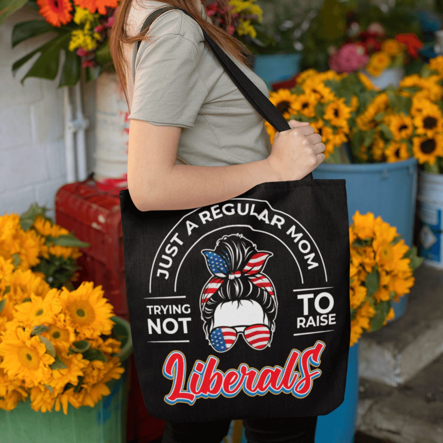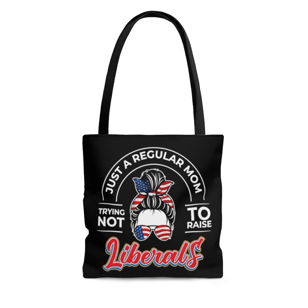 Let’s Shop Just A Regular Mom Trying Not To Raise Liberals All Over Print Tote Bag – Shoulder Bag – Reusable Bag!