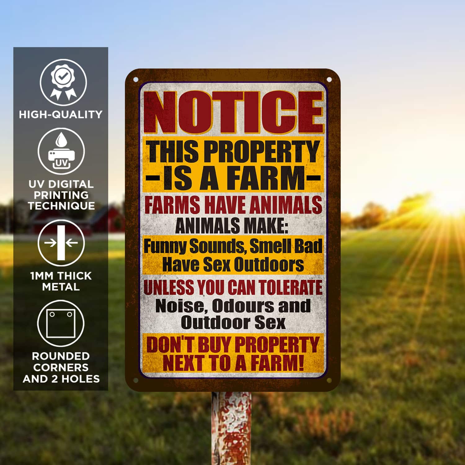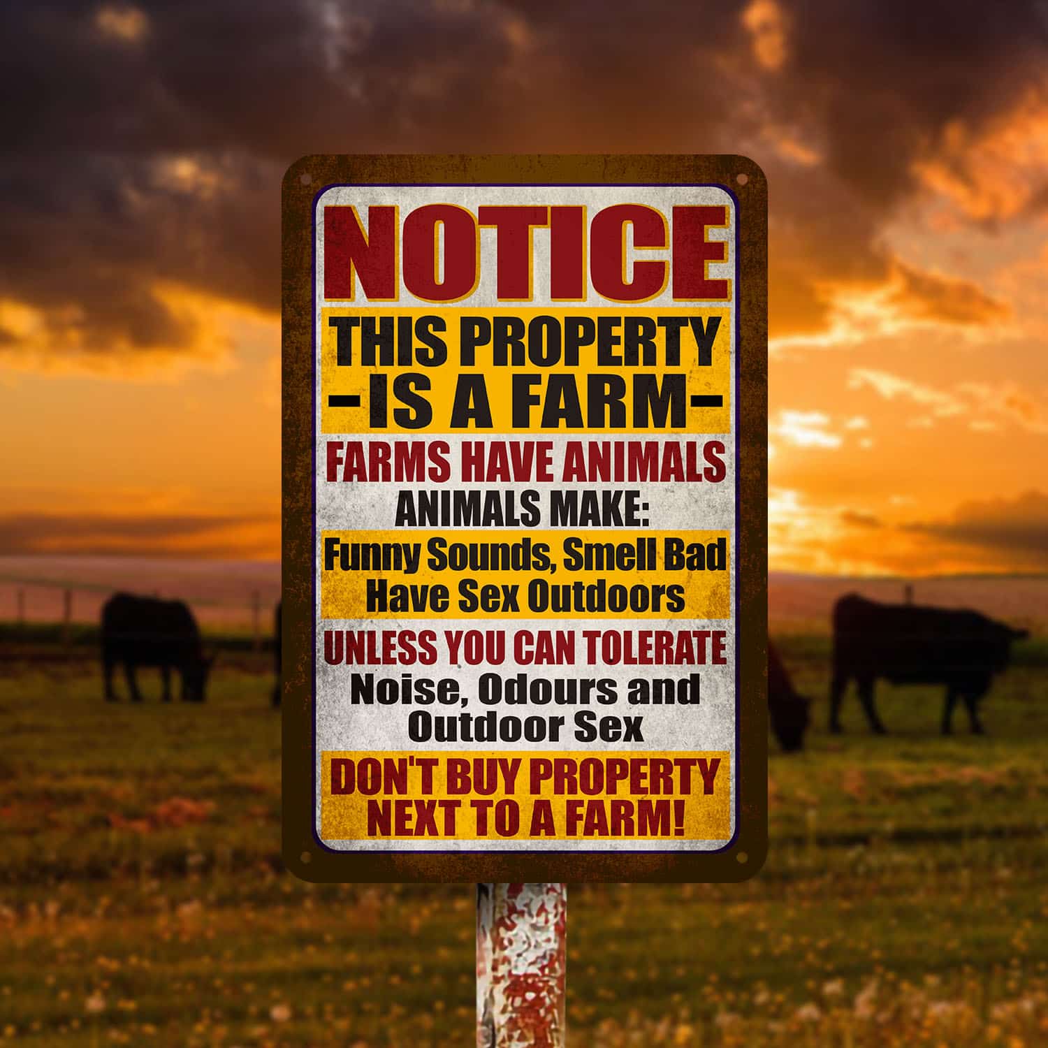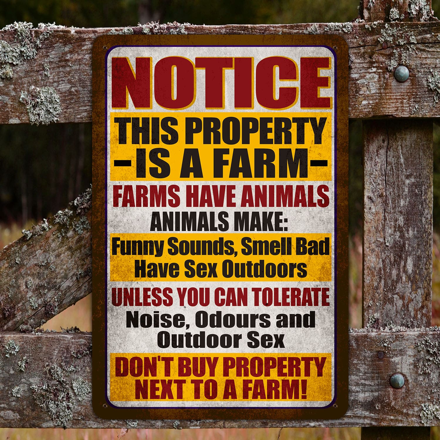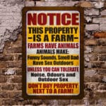Let’s Shop Notice This Property Is A Farm Farms Have Animals Metal Sign – Funny Sound Smell Bad Sign!