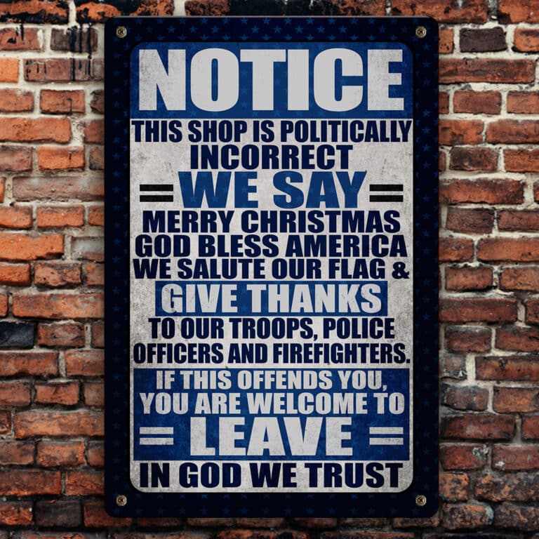 Let’s Shop Notice This Shop Is Politically Incorrect We Say Merry Christmas Shop Sign Metal Sign!