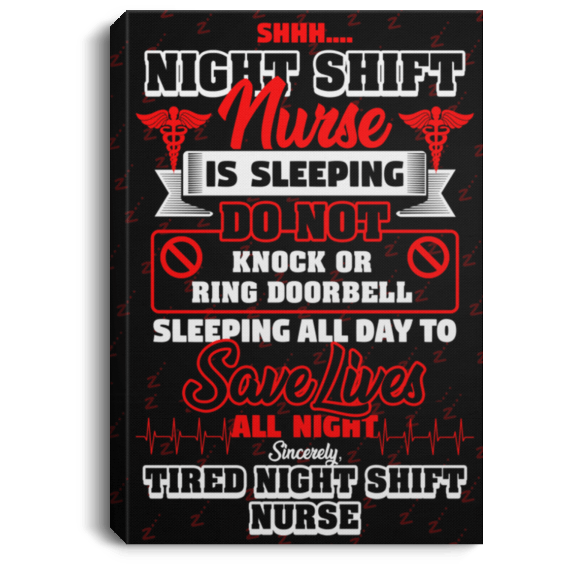Night Shift Nurse Sleeping Do Not Knock Or Ring Doorbell Framed Canvas Prints – Unframed Poster