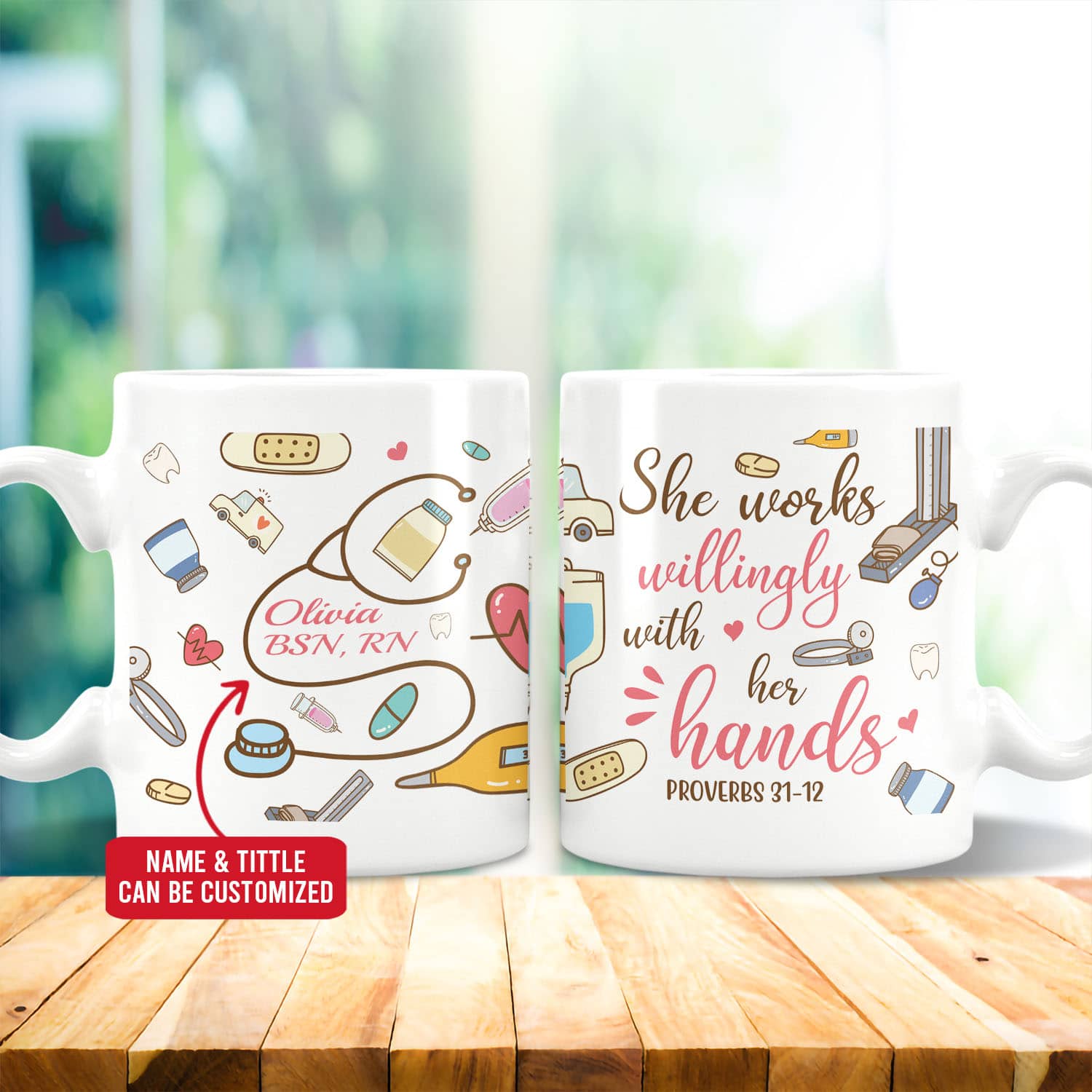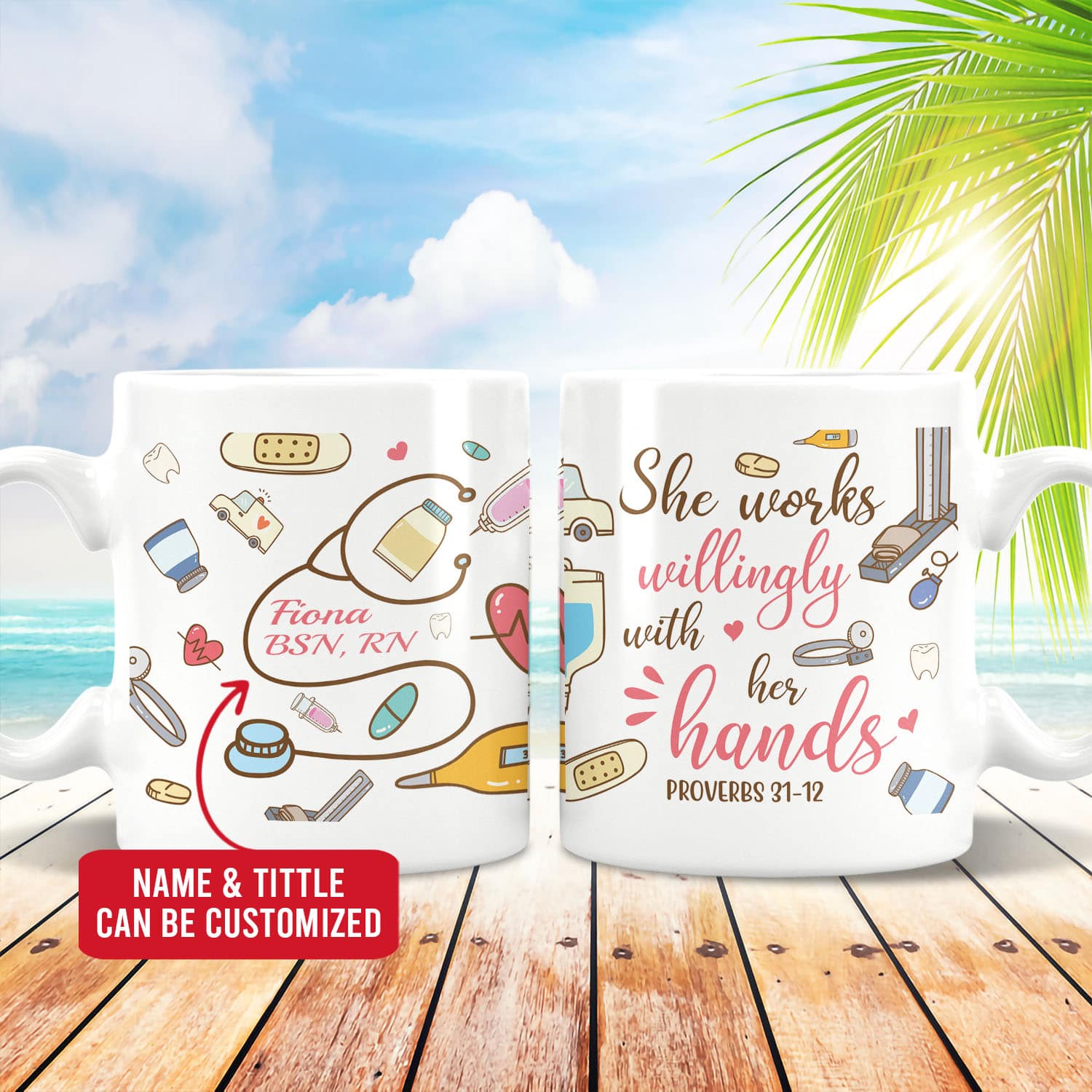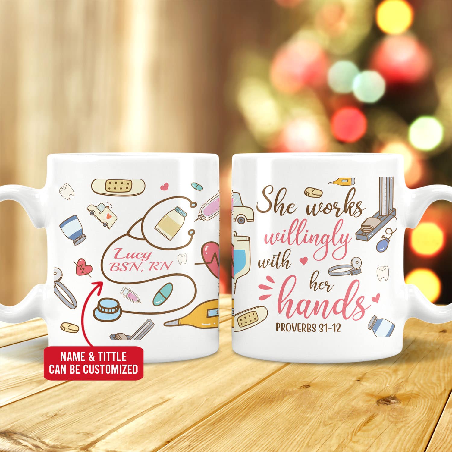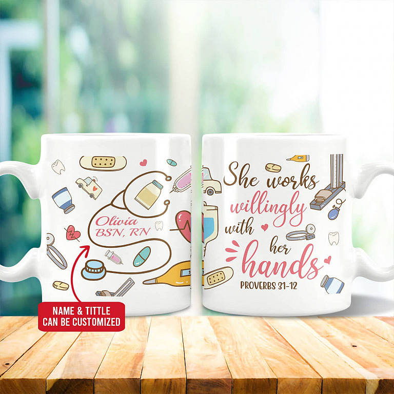 Let’s Shop Personalized She Works Willingly With Her Hands Proverbs 31:13 Ceramic Coffee Mug – Nurse Gift Mug!