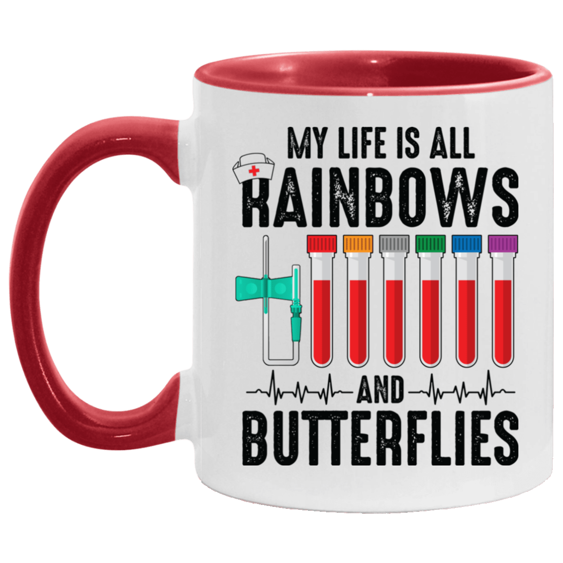 Shop My Life Is All Rainbows and Needle Butterflies Nurse Accent Mug.