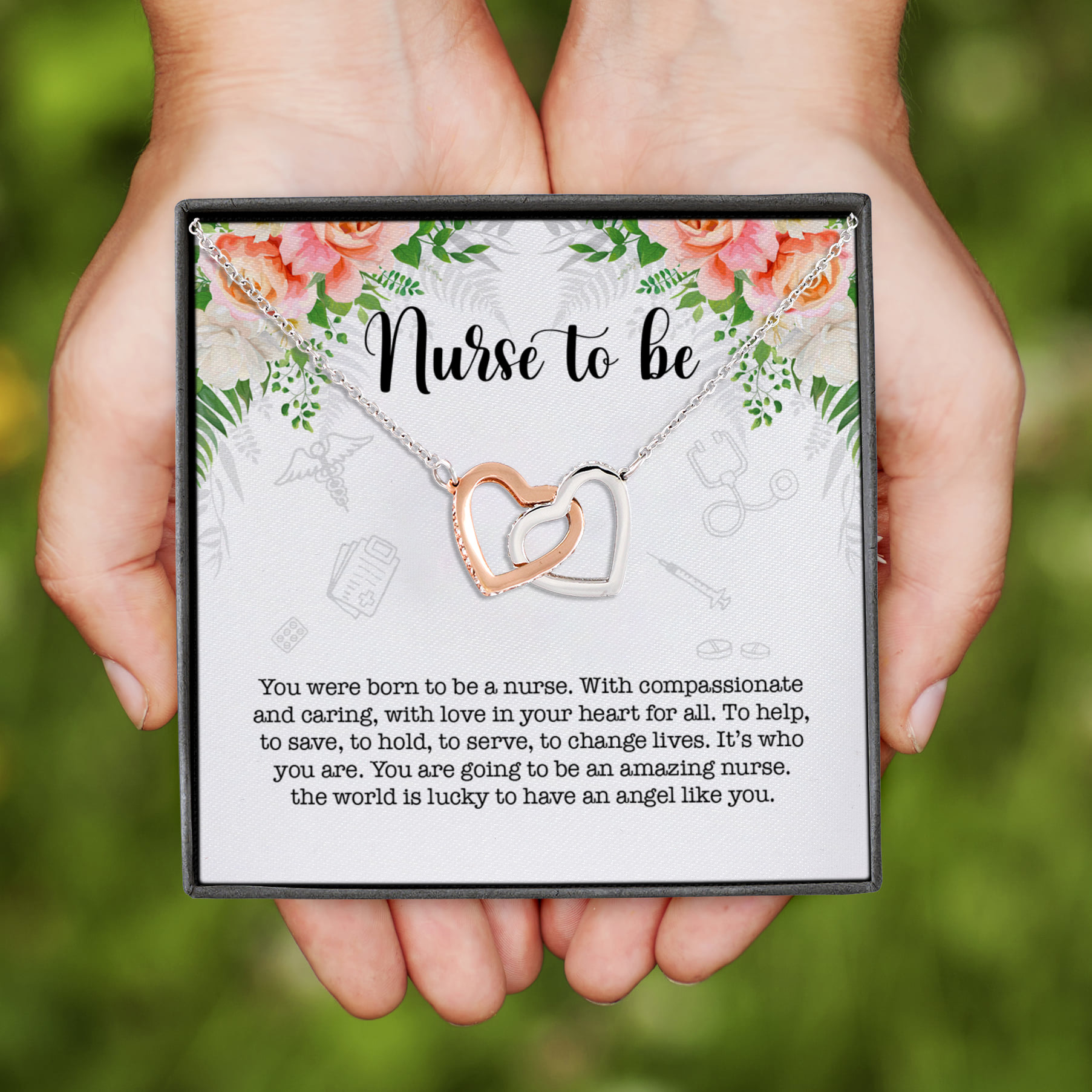 Let’s Shop Nurse Graduation You Were Born to Be a Nurse with Compassionate and Caring Love Interlocking Hearts Necklace!