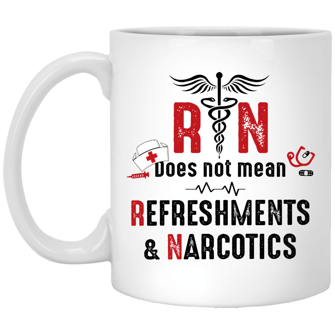 Shop Nurse Gift R.N. Does Not Mean Refreshments & Narcotics Ceramic Coffee Mug-Water Bottle-Color Changing Mug.