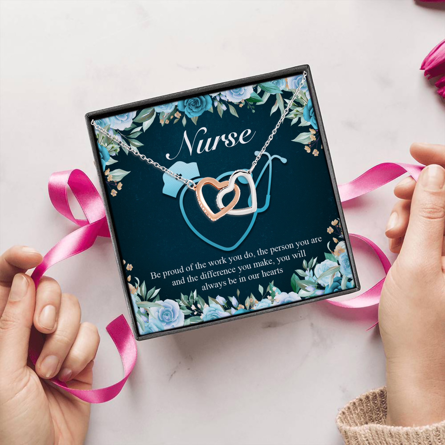 Let’s Shop Nurse Be Proud Of The Work You Do Interlocking Hearts Pendant Necklace – Appreciation Gift For Nurse!