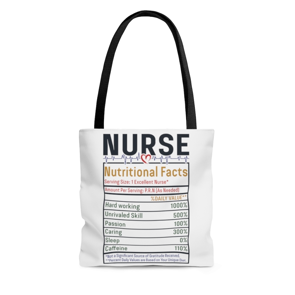 Shop Nurse Nutritional Facts All Over Print Tote Bag – Shoulder Bag – Reusable Grocery Shopping Bag.