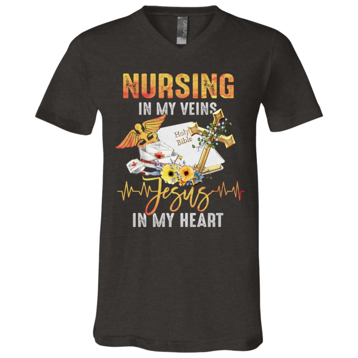 Nursing In My Veins Jesus In My Heart T-Shirt – Nurse Bible V-Neck Shirt