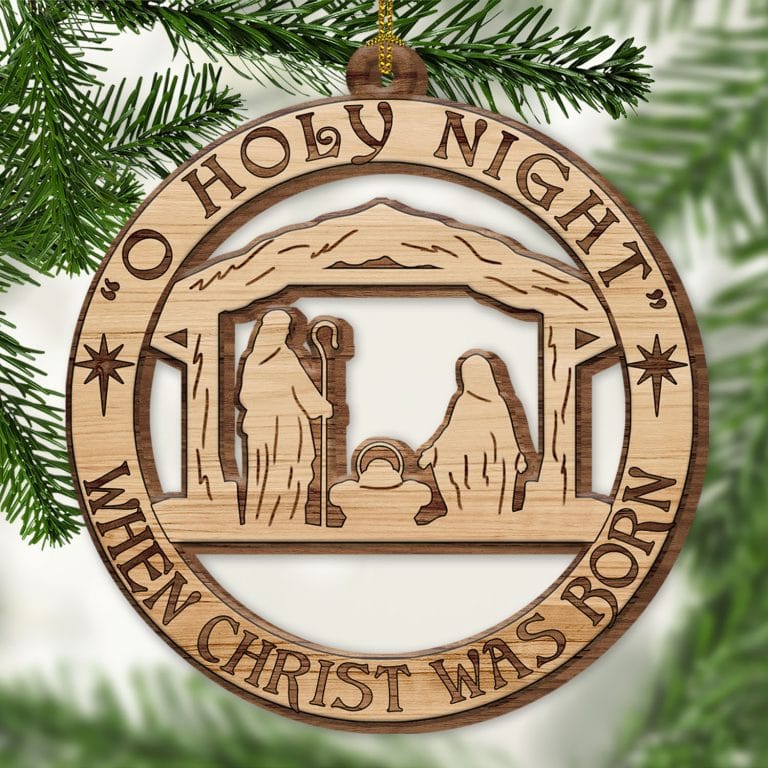 Let’s Shop O Holy Night When Christ Was Born Nativity Scene Jesus Custom Shaped Wooden Christmas Ornament!