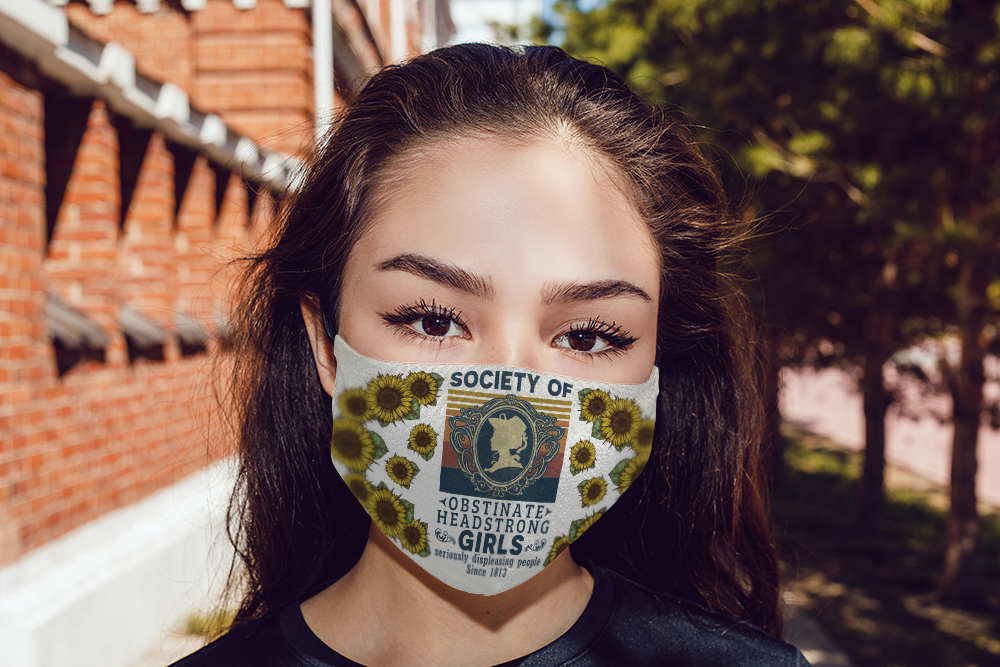 Shop Society Of Obstinate Headstrong Girls Displeasing People Since 1813 Vintage Retro Washable Reusable Custom – Printed Cloth Face Mask Cover.