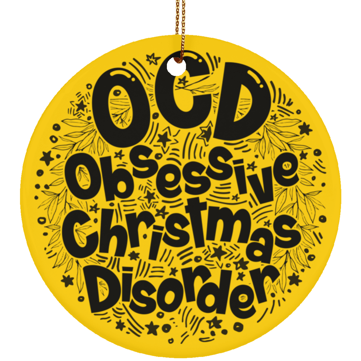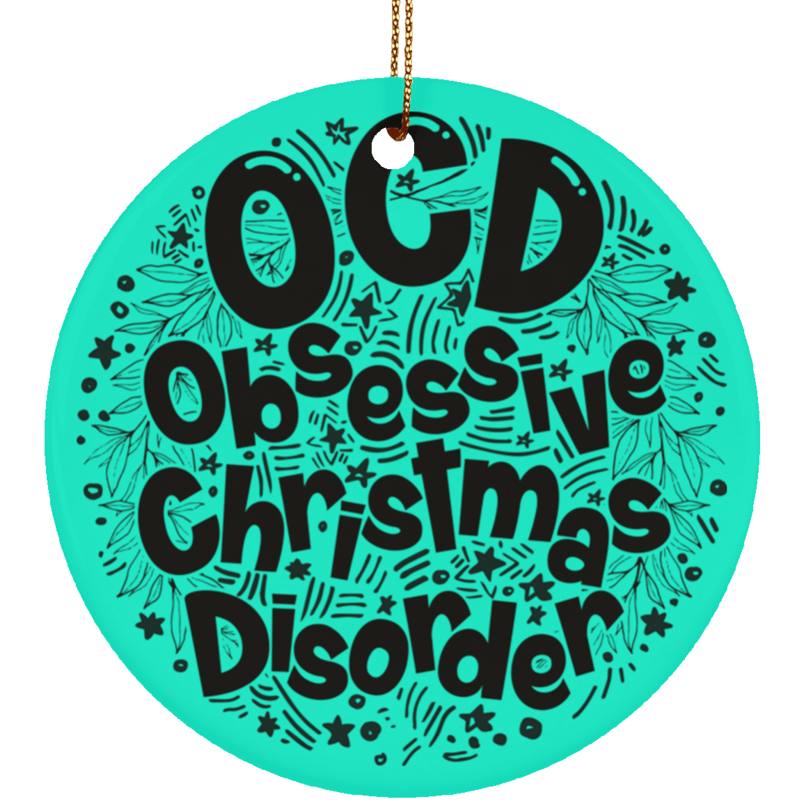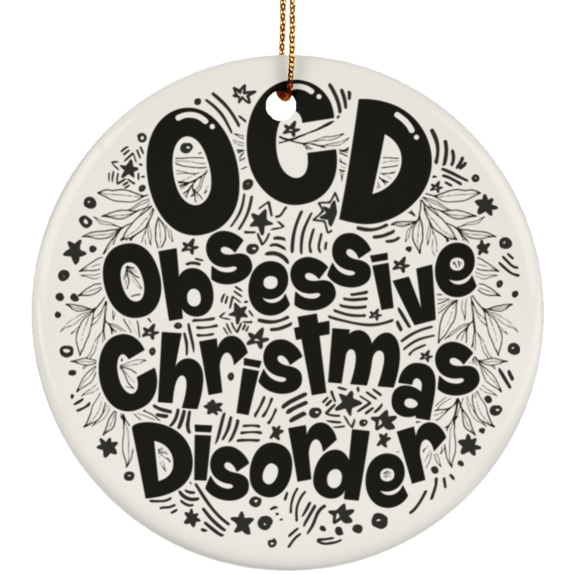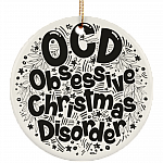 OCD Obsessive Christmas Disorder Porcelain Ceramic Circle Ornament