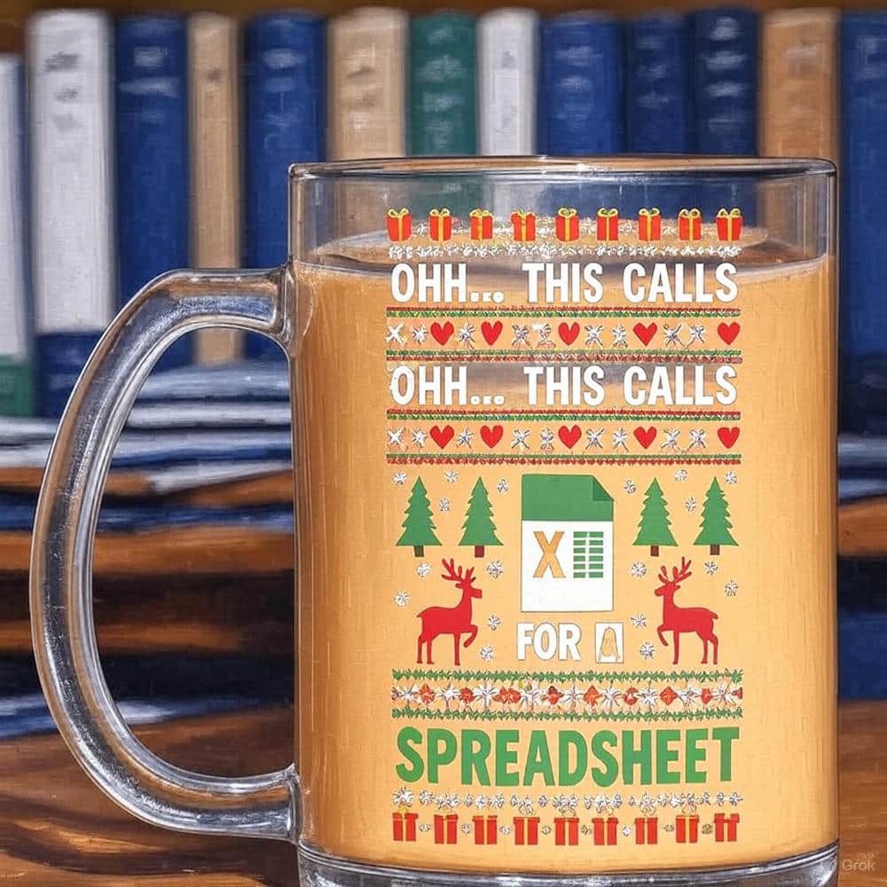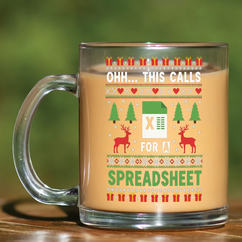 Let’s Shop Oh This Calls for a Spreadsheet Christmas Excel Ugly Clear Glass Mug!