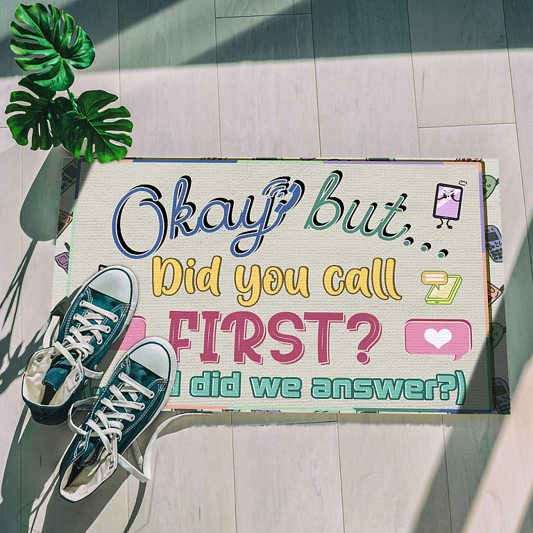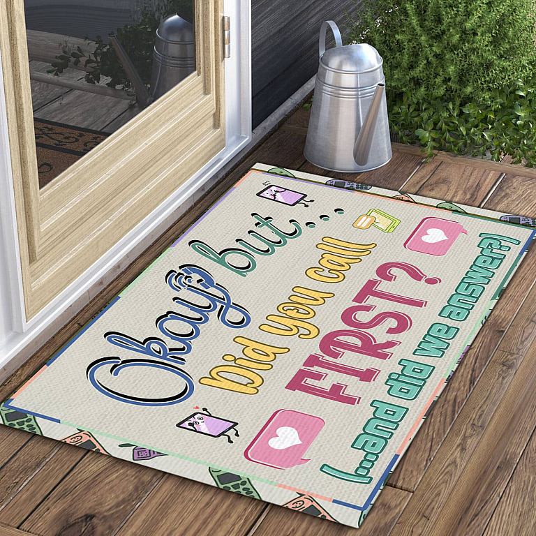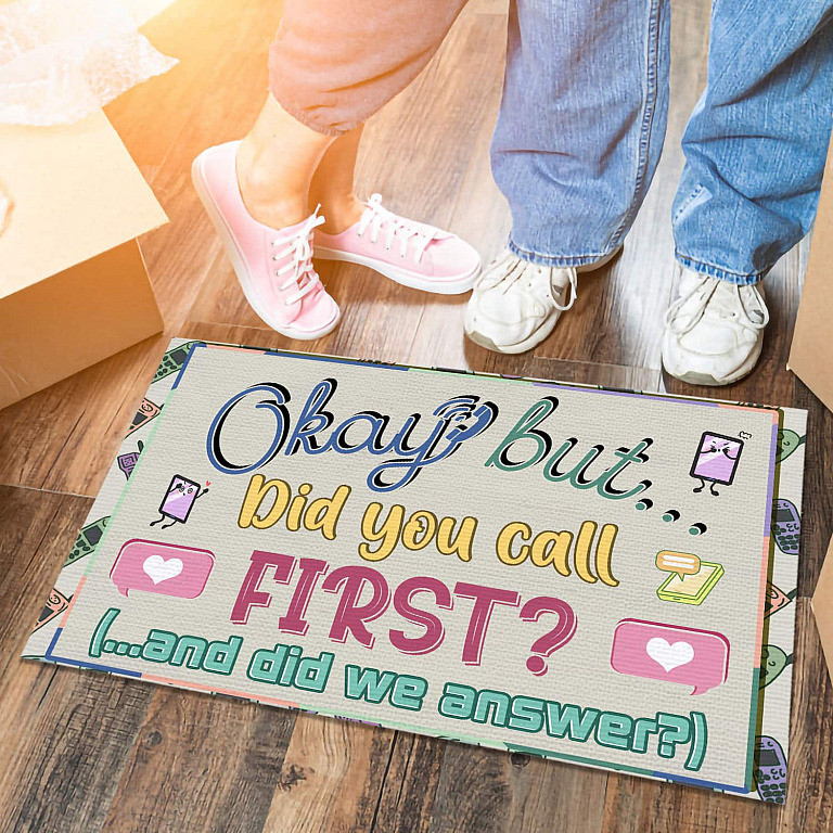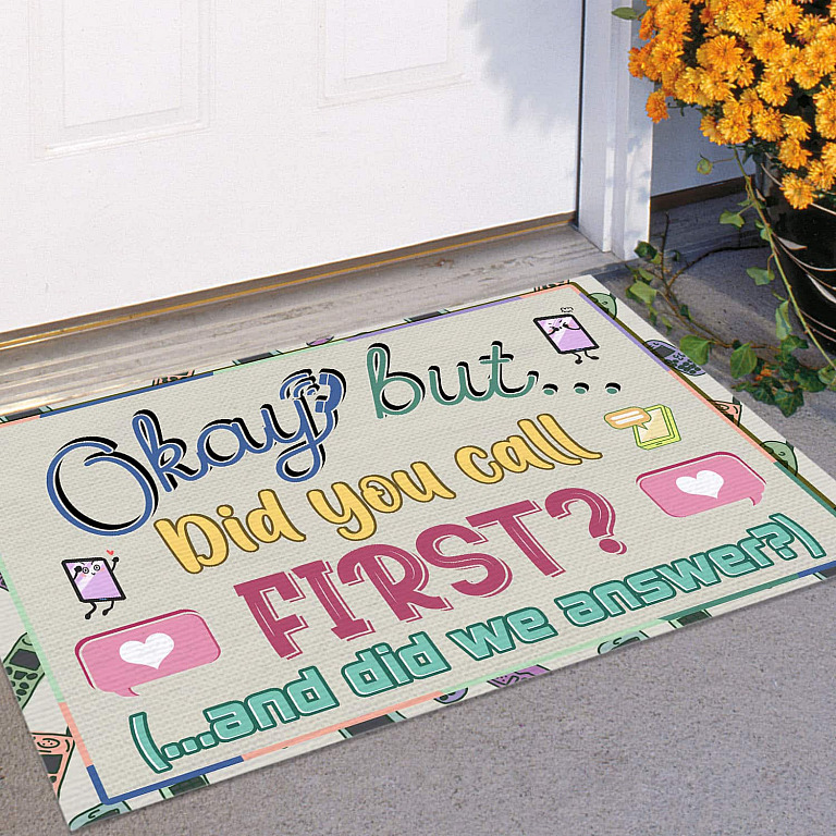 At CubeBik, besides custom doormats, we also offer tees, hoodies, sweaters, raglans, tanks, wall arts, canvases, posters, mugs, blankets, engraved jewelry, personalized necklaces, printed face masks, throw pillows, flags, tote bags, hats, accessories and more on our website, so do not miss our other Okay but Did You Call First and Did We Answer, Funny Welcome Rug, Funny Welcome Doormat, Funny Carpet, Welcome Carpet, Front Door Mats, Entry Carpet, Entrance Rug, Funny Entryway Door Rug, Entrance Mat for Home, Humorous Funny Doormat, Warm House Gift, Welcome Mat Gift, Cheerful Gift, New Homeowner Gift, New Home Decorations, Indoor Outdoor Rug related merchandise. Moreover, all the products are made-to-order and one of a kind custom designs you can’t get elsewhere in normal stores. Let’s discover CubeBik.com now and find your favorite personalized items. We can’t wait to surprise and build beautiful memories with you and your loved ones.