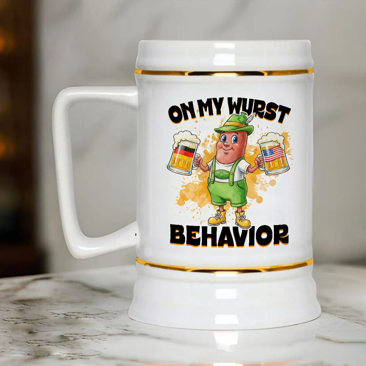 Let’s Shop Oktoberfest On My Wurst Behavior Funny Sausage Drinking Beer German Beer Stein – Ceramic Coffee Mug!