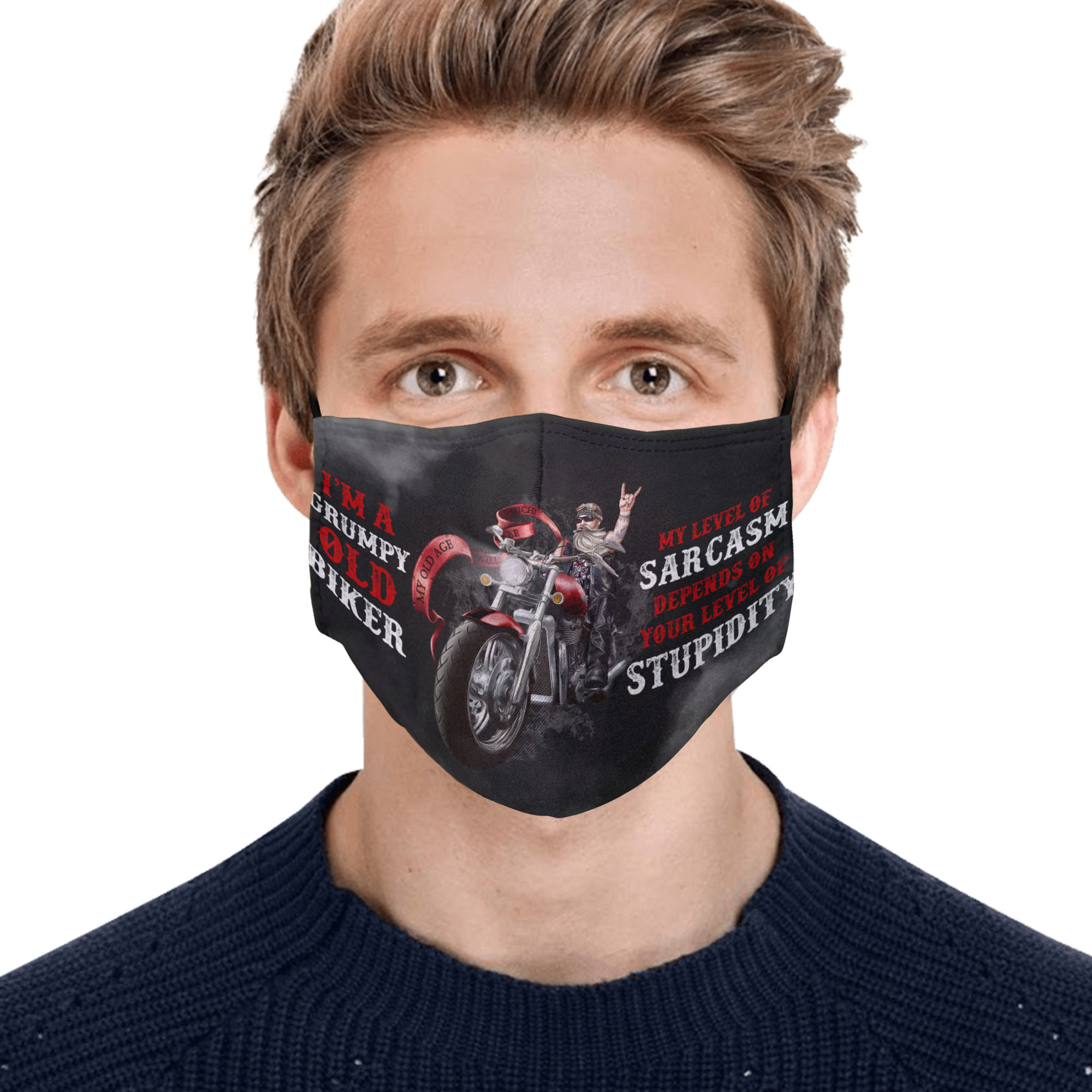 Let’s Shop I’m a Grumpy Old Biker My Level of Sarcasm Depends on Your Level of Stupidity Reusable Cloth Face Mask!